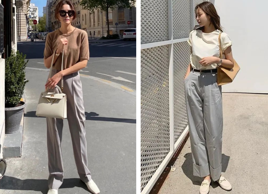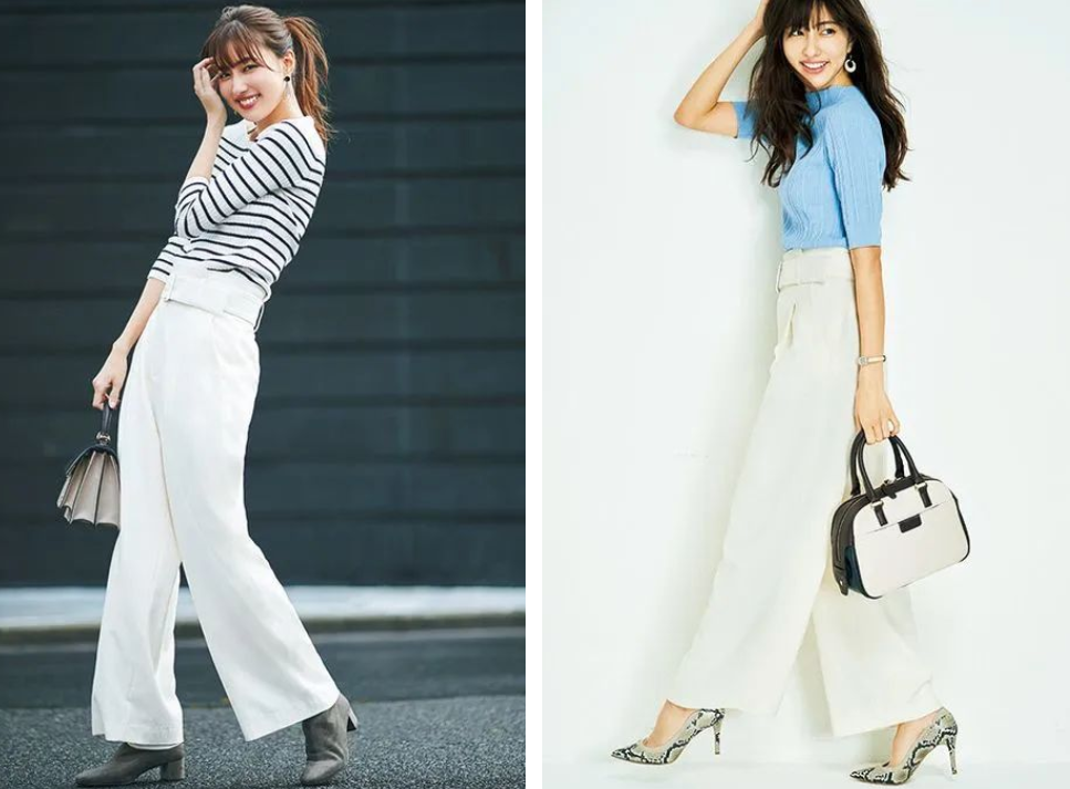 When you wear a T-shirt with wide-leg pants at work, if you want to show a sense of elegance, don’t match your lower body too casually.