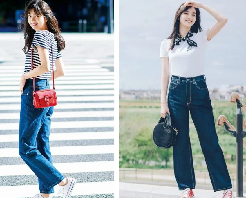 There are many wide-leg pants that are popular in summer. Wide-leg pants made of denim are the most common and eye-catching. Pairing these denim wide-leg pants with a T-shirt is simple and fashionable.