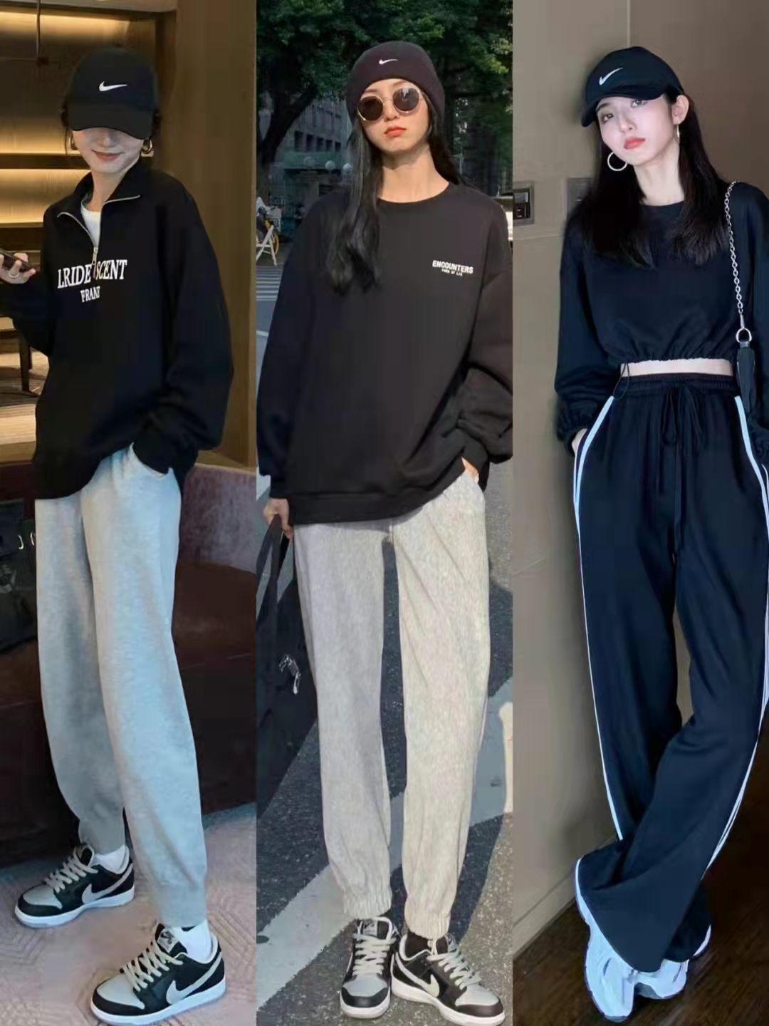 Polo collar zipper style sweatshirts are also particularly popular this year. This kind of sweatshirt is more of an American retro street style. For the lower body, choose gray leggings. This combination is more stylish and full of sports and leisure style.