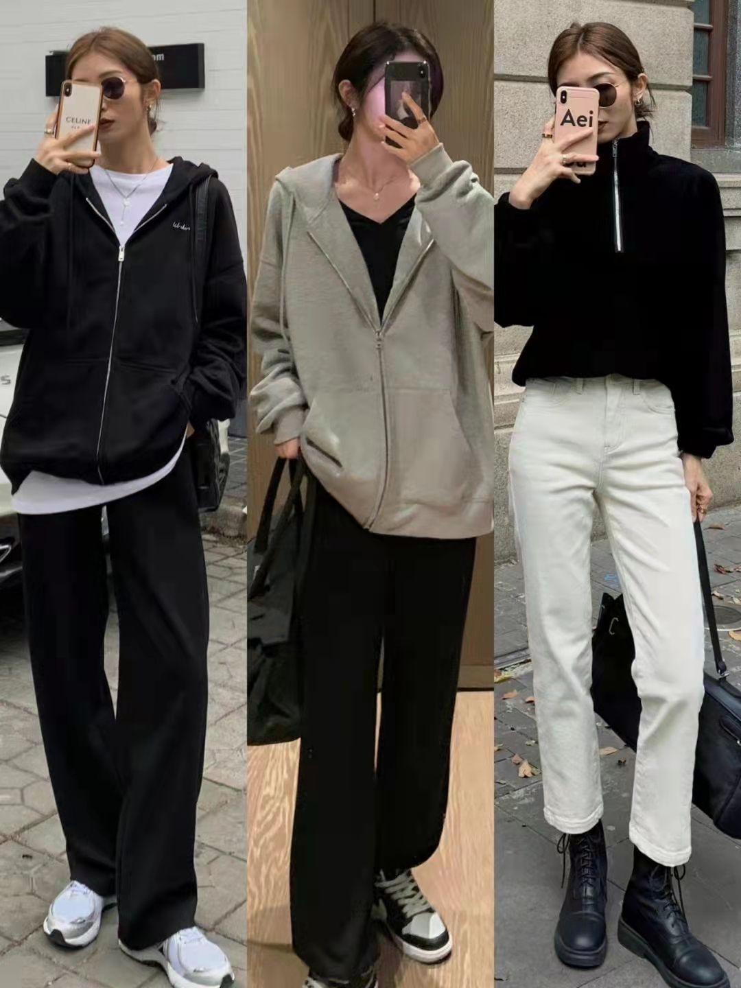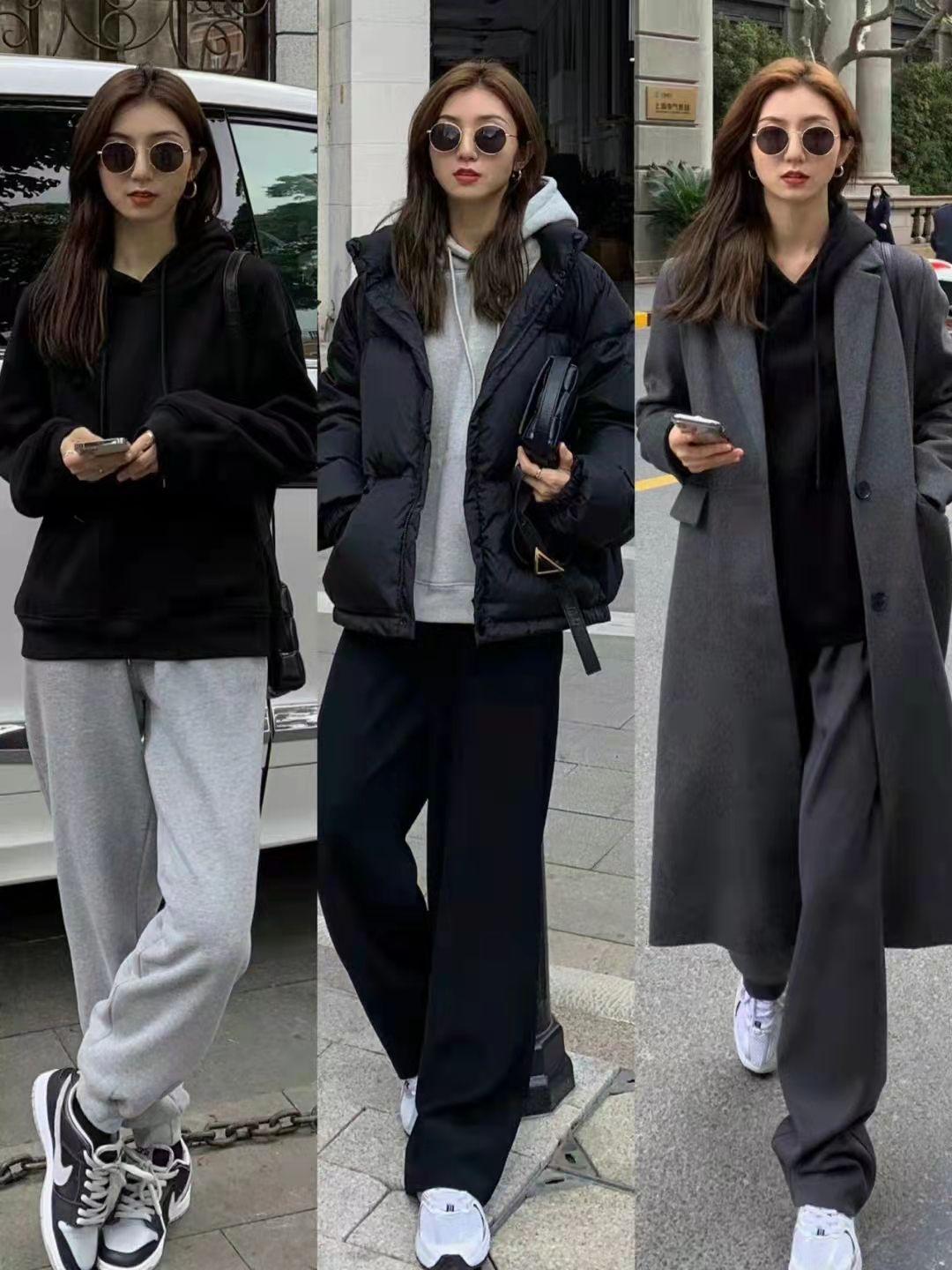 The matching method of matching black with the same color is also superimposed, but with a zipper, it will become more relaxed and natural. The gray zipper style sweatshirt is also very versatile and has a certain sense of breakthrough in color.