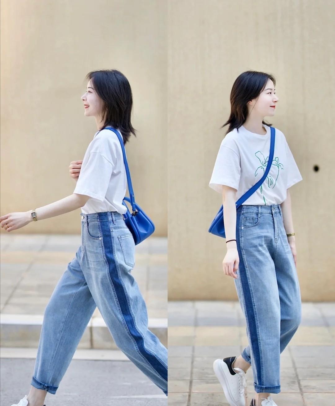 A white T-shirt is the purest item and can be combined with blue jeans. This type of trousers does not have any age requirements for women. , can be used and controlled by all ages.