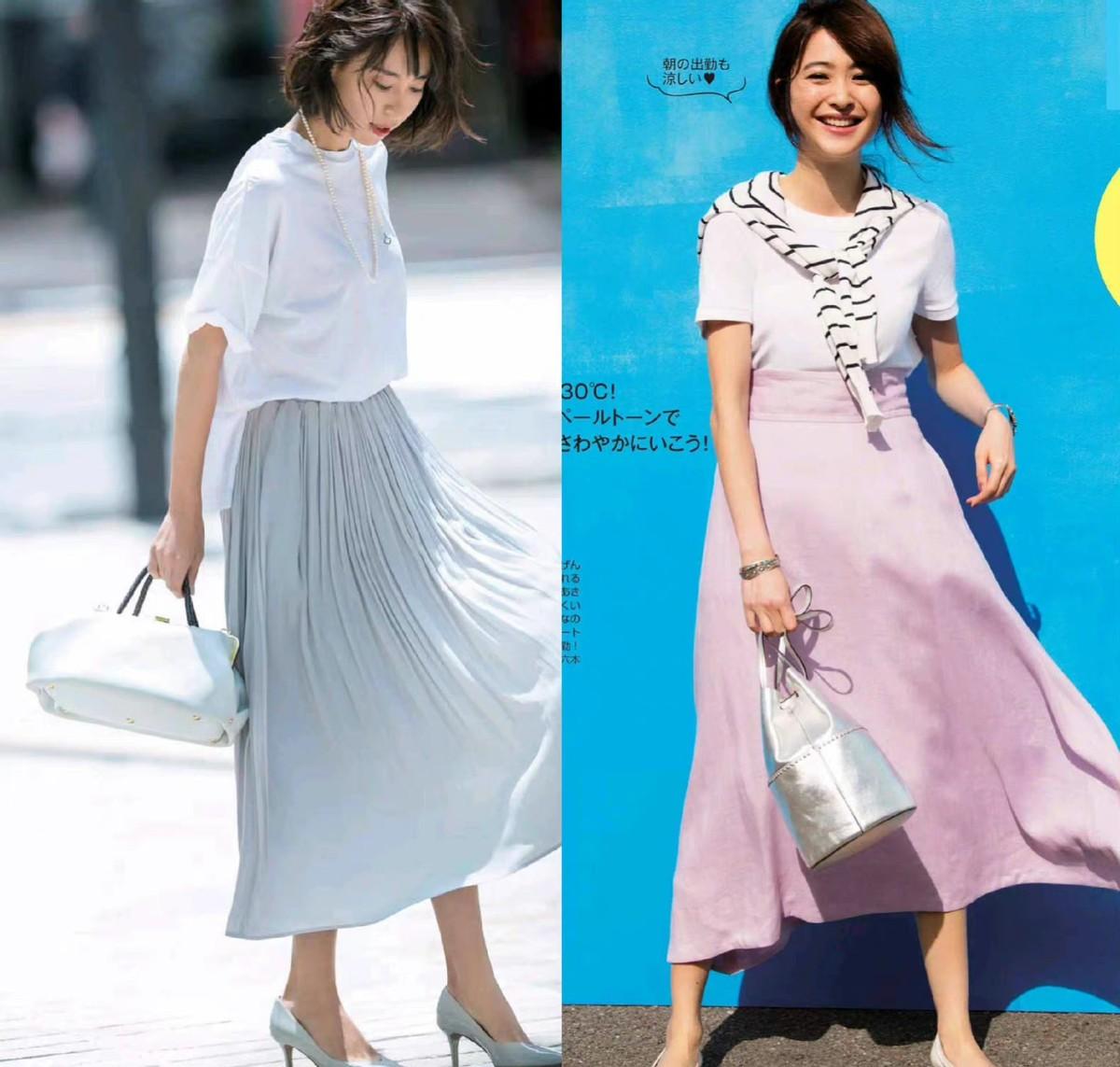 These two outfits are very typical examples. If matched with a light blue skirt, it can create a very fresh and elegant look. The feeling is that if you use a pink skirt, you will not have the trouble of looking dark, but will be sweeter.