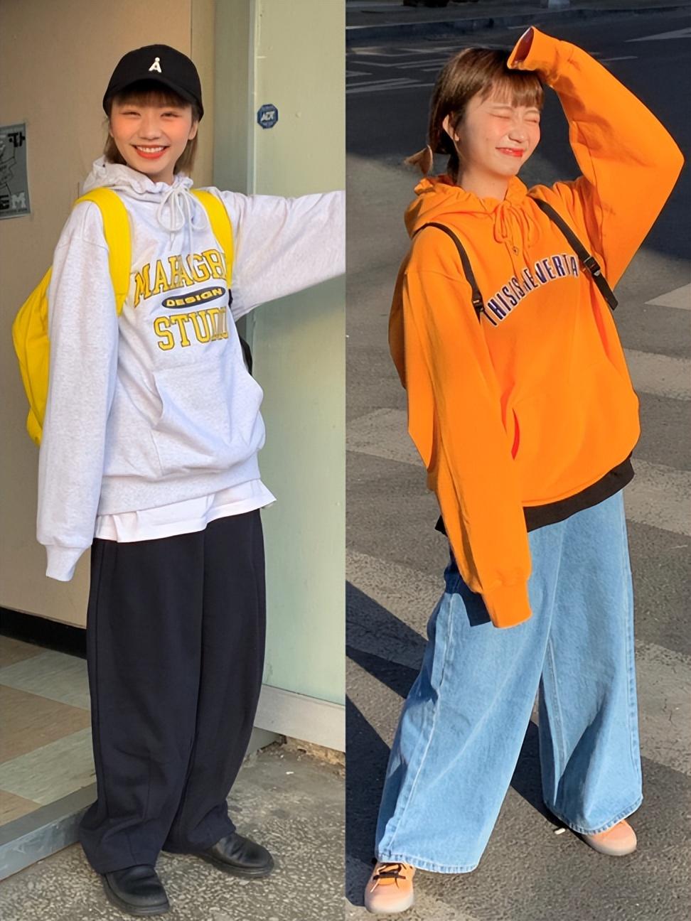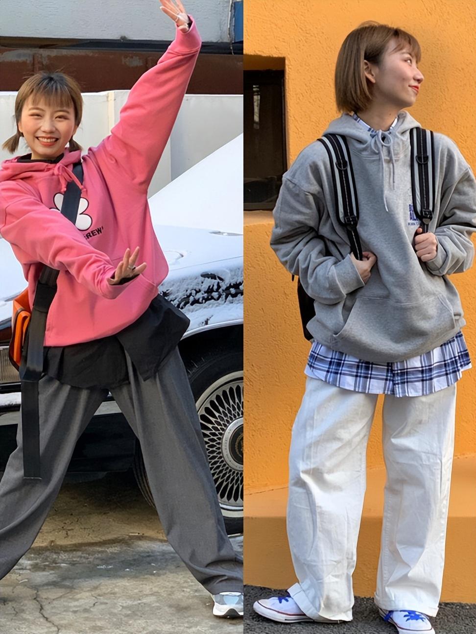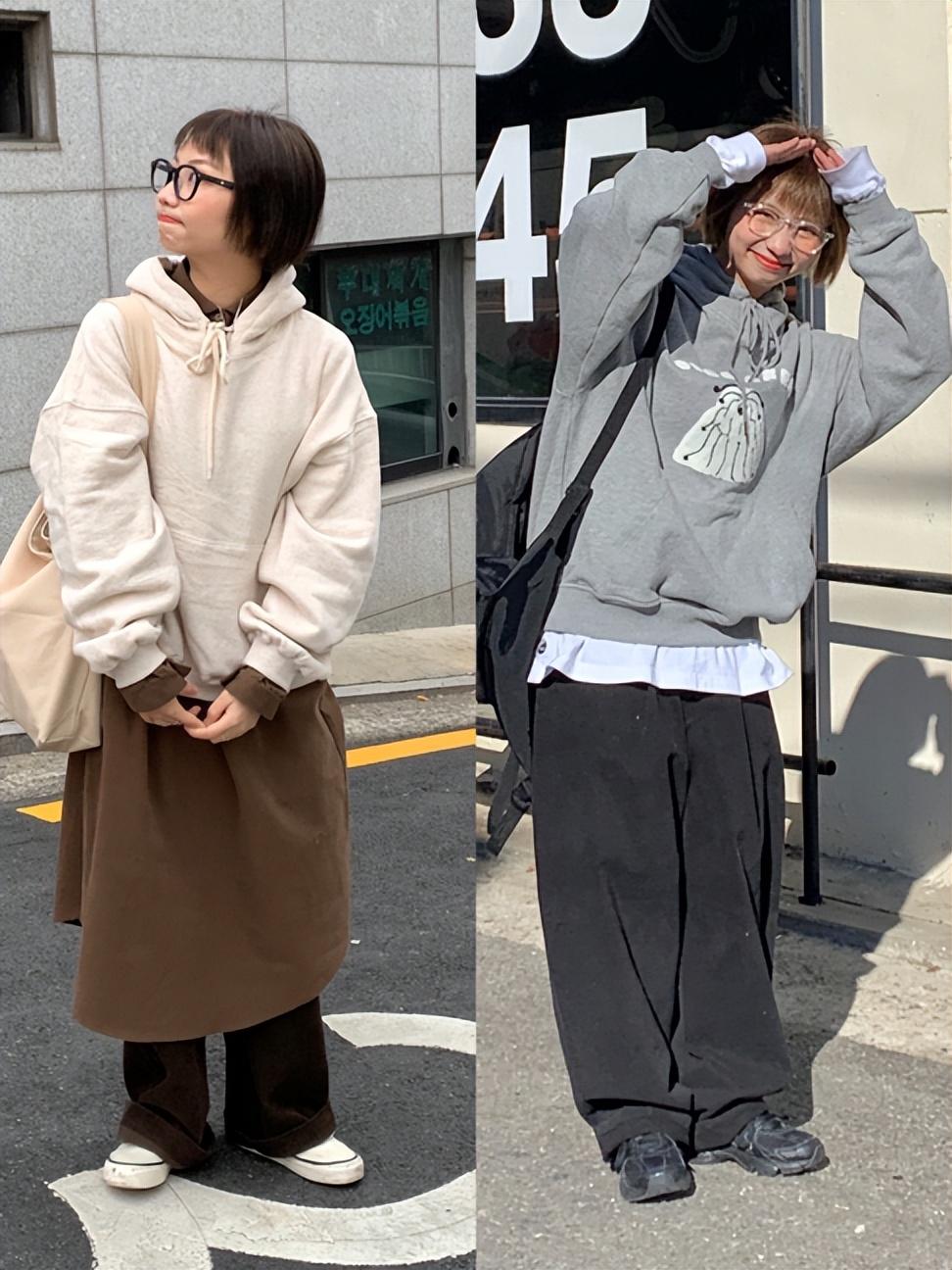 How many loose sweatshirts are there? There are various ways of dressing. What we want to avoid is wide at the top and wide at the bottom. If the upper body and lower body are matched too loosely, it will easily widen our figure.