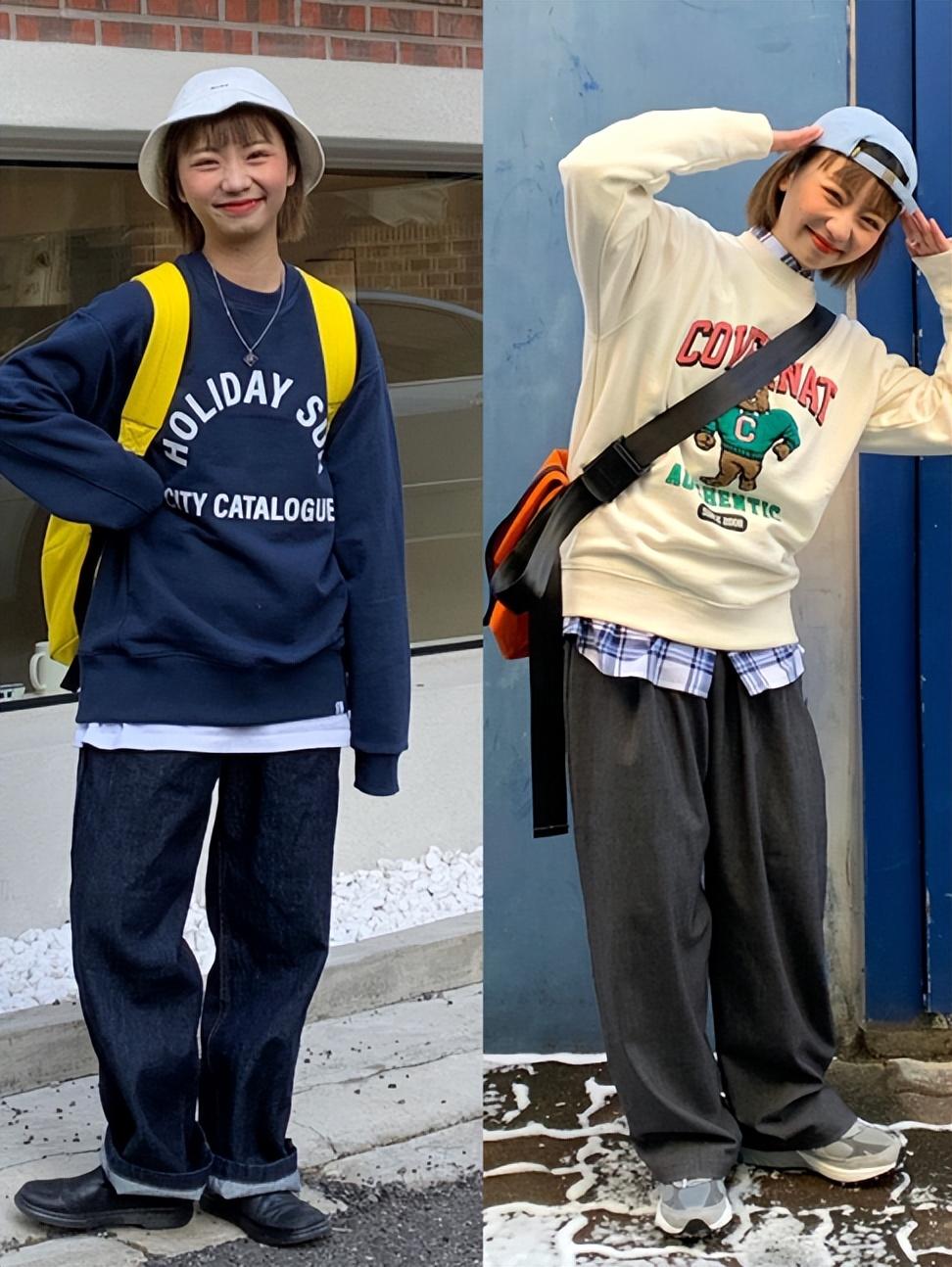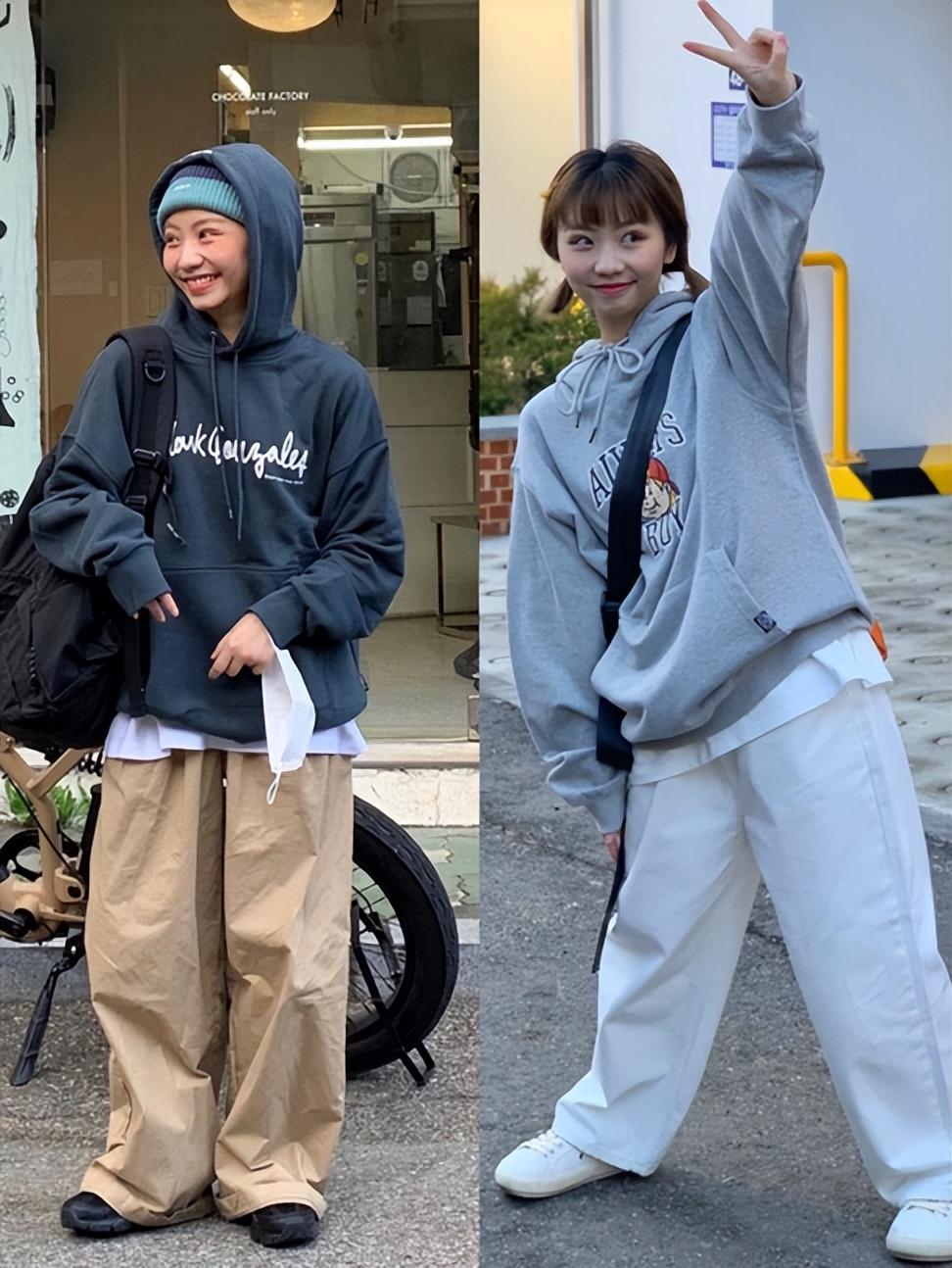 The outfits of these ladies tend to be casual.Loose wide-leg trousers combined with a casual sweatshirt make the combination casual and easy, without too high requirements on the figure.