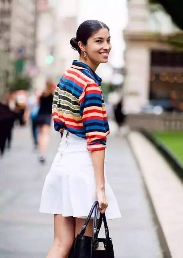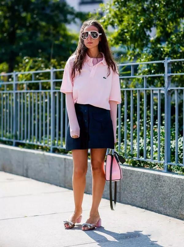 The obvious feature of the Polo shirt is its collar design, which gives people a tight feeling. This kind of tightness is very suitable when paired with tights. Tuck the corners of the polo shirt into the tights to show off the slender legs. This combination is very professional and a very low-key look, which is very suitable. Working woman.