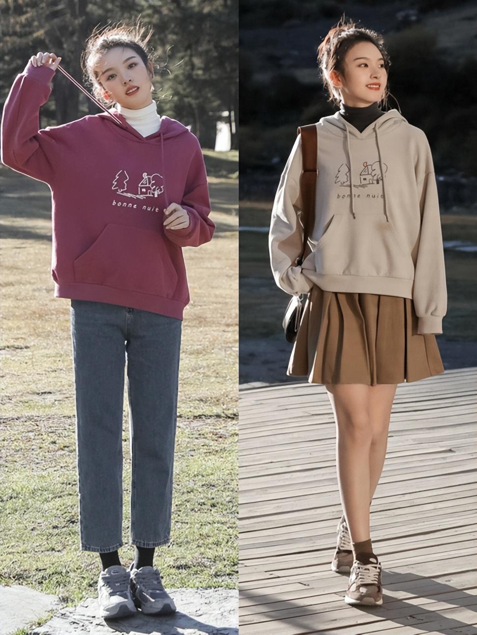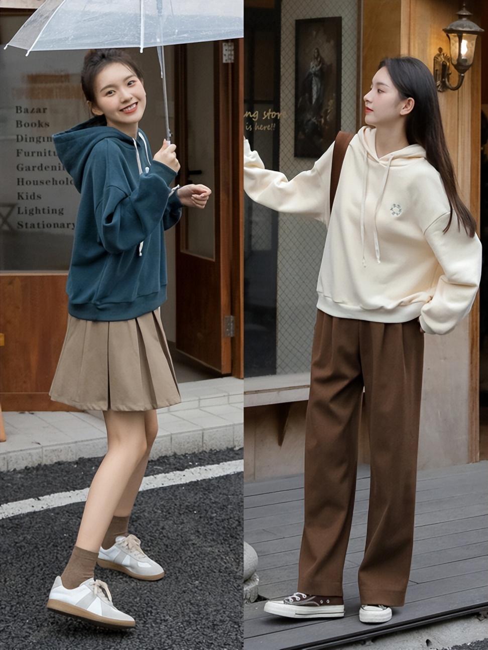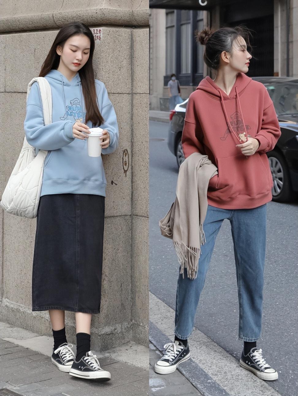 Most of the popular sweatshirts this year are relatively loose , if girls want to choose sweatshirts, don’t always wear tight-fitting styles, which can easily make you look shorter or fatter.