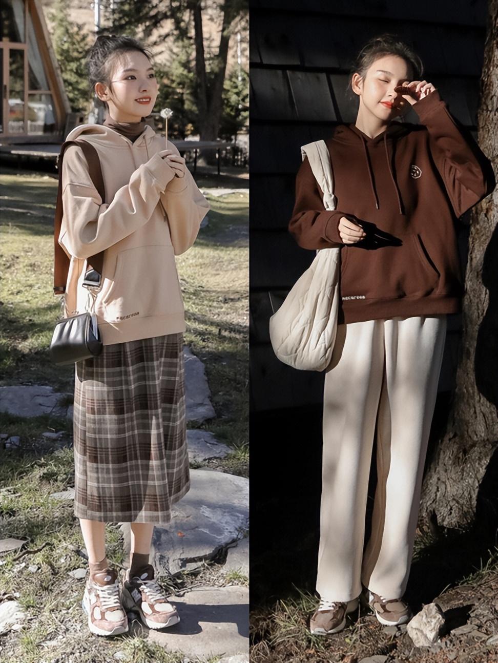 Like these elegant ladies, when they wear sweaters, even if they choose hooded sweatshirts, they will be more tolerant of their body shapes. It’s very good. Even if you have a thick neck or a big face, wearing this kind of low-collared sweatshirt is very helpful for making you look slimmer.