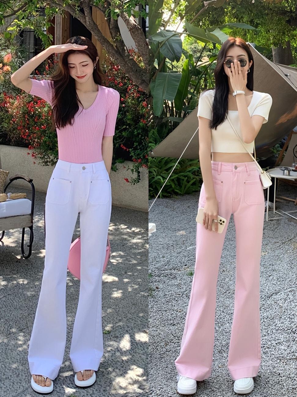High-waisted bell-bottoms are very popular this year, if you don’t want to If you wear wide-leg pants, you can try these kind of bootcut pants. The design of the flared pants legs is quite personalized. Its trouser legs extend outward, which is very friendly to those with muscular calves, and it also has a certain retro feel when paired with it.