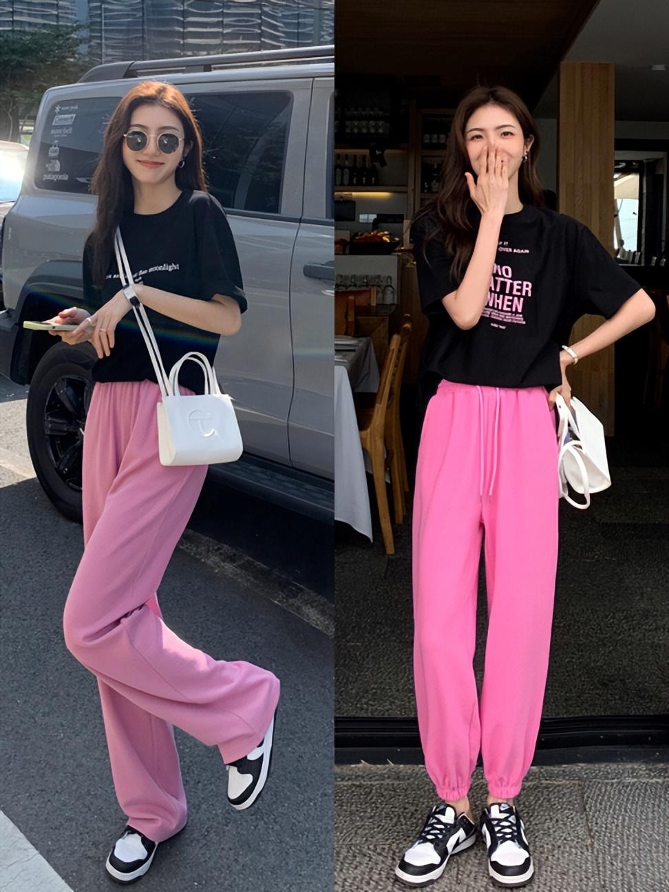 If you want to match it with a variety of casual pants T-shirts, you can also try these colorful styles, just like pink wide-leg pants, they are also very fashionable and look better than the white wide-leg pants that most of us often wear. More fashionable.