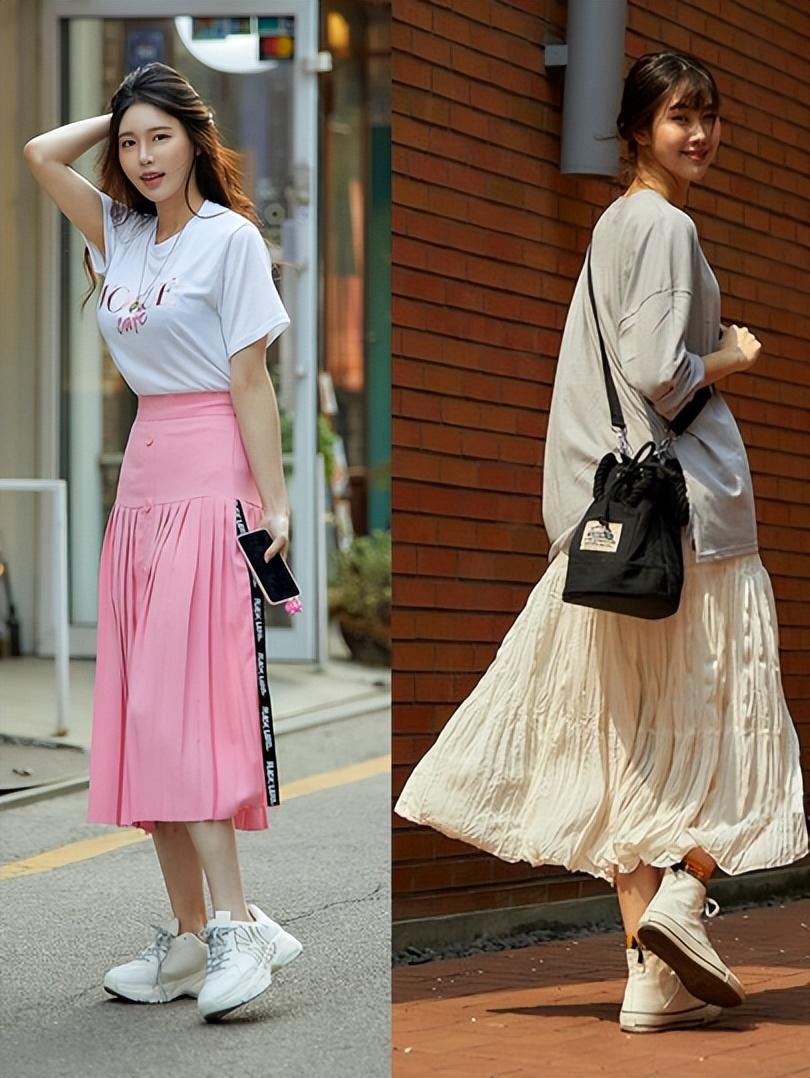 Pairing a mid-length skirt with a short T-shirt will not make you feel bulky, nor will it make you slim down, and then pair it with a pair of light sandals, or Paired with simple white shoes, it is comfortable, simple and beautiful.