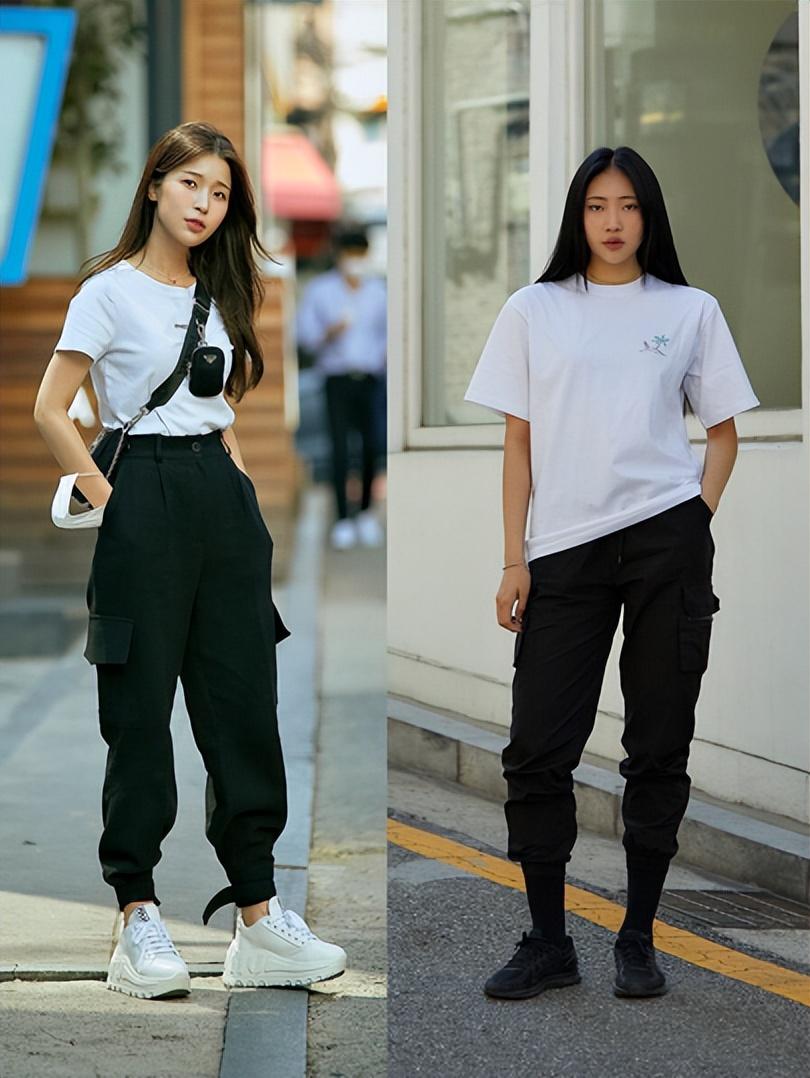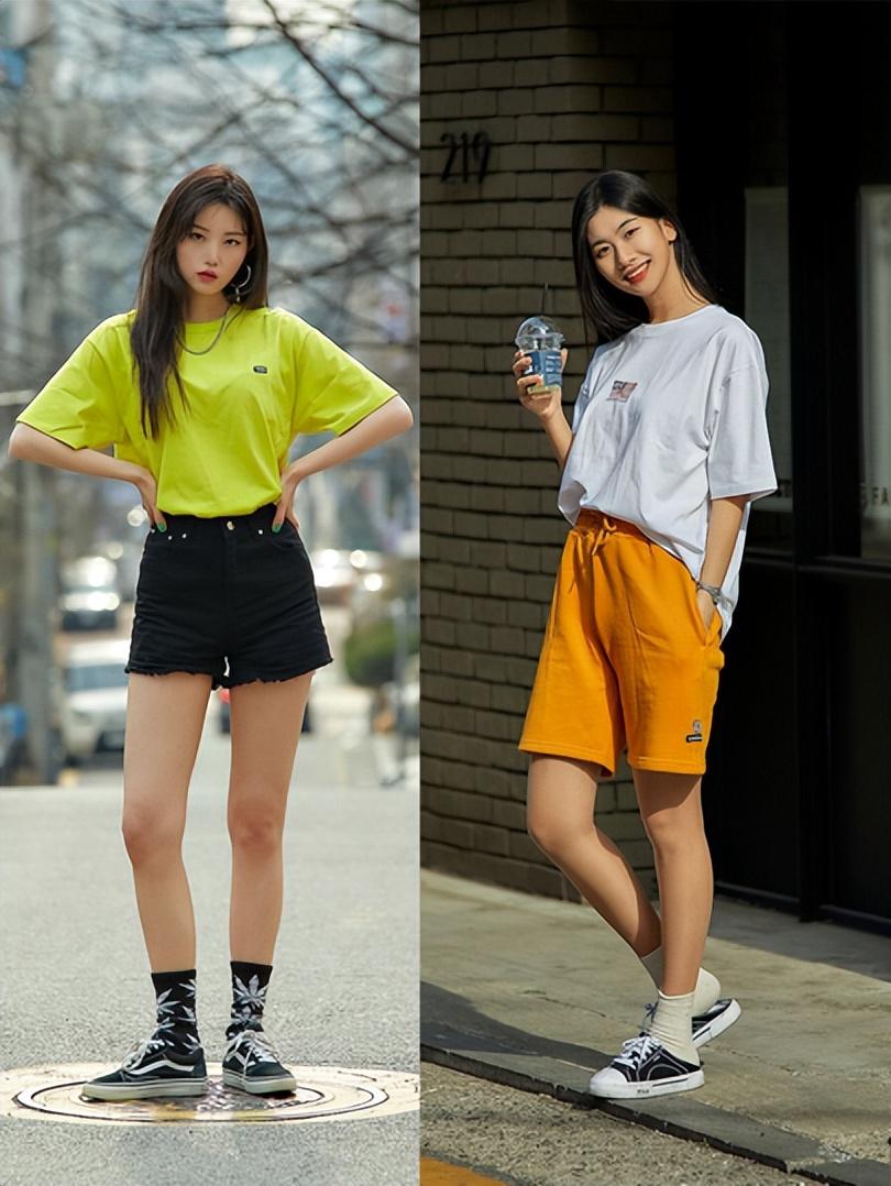 The combination of T-shirts and shorts is casual and fashionable. Many girls like to wear shorts in summer, which are cool and show off their figure. Sports shorts like this are also more casual and cooler than ordinary trousers.