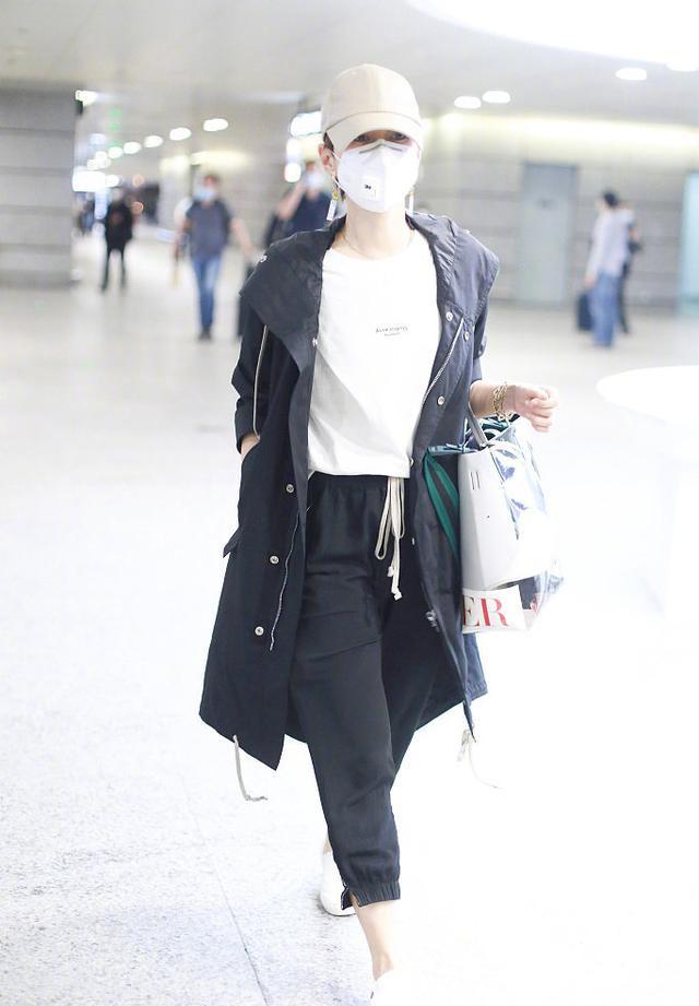 The color of this set is very simple. The jacket and trousers are both black, which makes it more chic and handsome; the T-shirt and shoes under the feet are both The white color matches well, and although there is not much color, it still looks fashionable. Ma Yili’s outfit is very tolerant to body shapes. The shape of the jacket is suitable for pear-shaped figures. She tucks her top into her pants to show off her better body proportions. The shape of the pants is slightly more like carrot pants, which is very friendly to those with muscular thighs.
