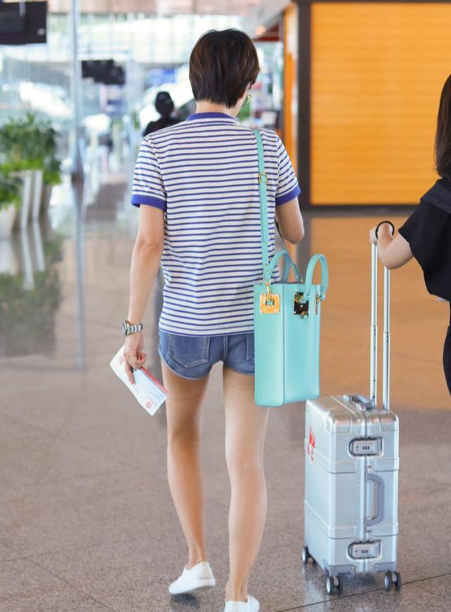 Middle-aged Ma Yili looks like a girl. She wears a striped shirt with denim shorts, and her tight and beautiful legs are enviable. Ma Yili, who is 43 years old, still looks girly and her figure is well maintained. When I first saw this set of photos, I was attracted by her long legs. It is really enviable and jealous. Pairing a polo shirt with shorts is very casual, but the color of this polo shirt is picky about skin color. Women with dark skin should try it with caution. It not only tends to look rustic, but also makes the skin darker. Polo shirts come in many colors, just choose according to your skin color and the color and style of the bottoms that match it.