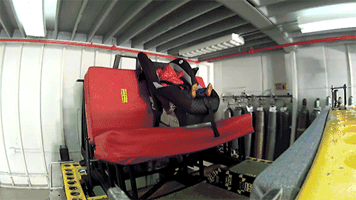 At the same impact speed, the dummy taking off the down jacket was firmly fixed in the seat, with only slight rebound, and No slippage.