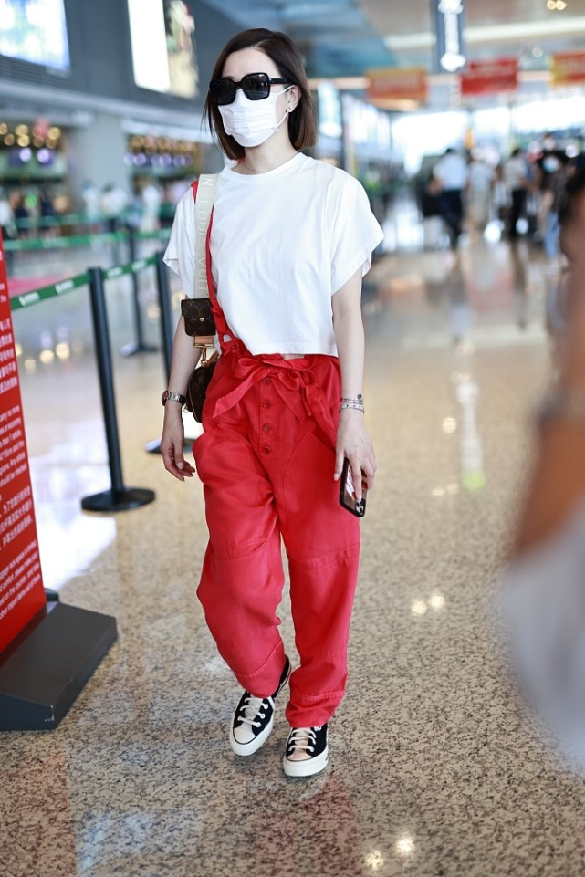 Just like a white T-shirt + red overalls, the item itself is not picky, and the combination of white and red can also become an outfit addition. The focus is on wearing fresh and girly clothes in summer, which is not inconsistent with style, so the 47-year-old Charmaine Sheh still looks good in her outfit. She wears a white T-shirt and red suspenders, and she has lost more than 20 years of her age.