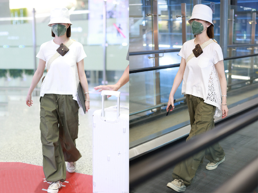 Don’t think that the current white T-shirts are still very single, put aside the basic ones, Various design methods can also add a bit of style and fashion to clothing, just like in white.On the back of the T-shirt, hollows are used as splicing and decoration, which can create an extraordinary garment. Paired with a pair of loose olive green trousers, the workwear-style design shows a handsome and neat feeling, and it is also more chic to wear.