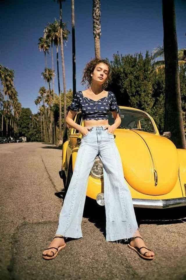 The T-shirt with square neck and V-neck design is more fashionable and individual , paired with jeans, the youthfulness is stronger. The short navel-baring design adds a sense of individual youth. It fully reflects the aesthetics of young people’s outfits, which is in line with the dressing and personality requirements of young people. Moreover, the addition of puff sleeves to the T-shirt makes it sweeter. Playful, adding to the visual effect of a smart girl.