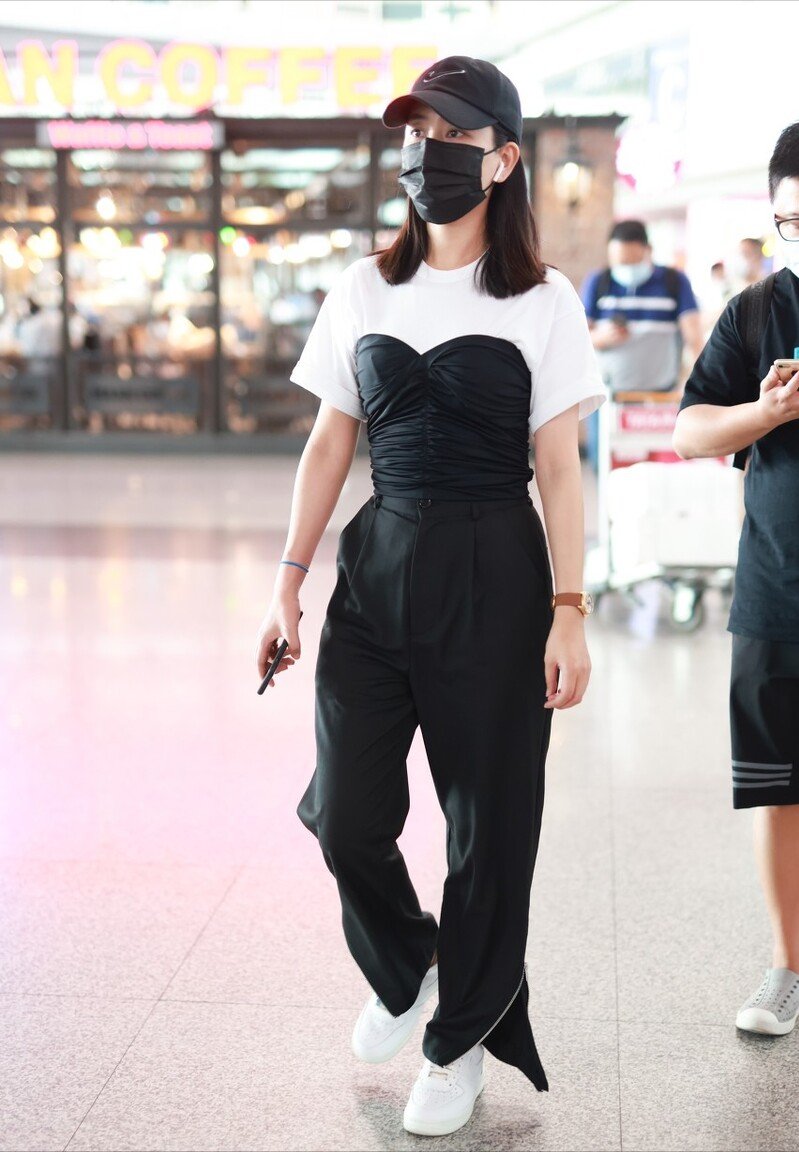 Ma Su uses a corset and tube top that others can’t understand and matches it with a white T to look trendy. This style is really fashionable. It is also good-looking, and the way of layering shows a youthful style. The classic black and white combination not only highlights the sense of fashion but also increases the overall aura. The waistband and tube top not only show your figure, but also look good.