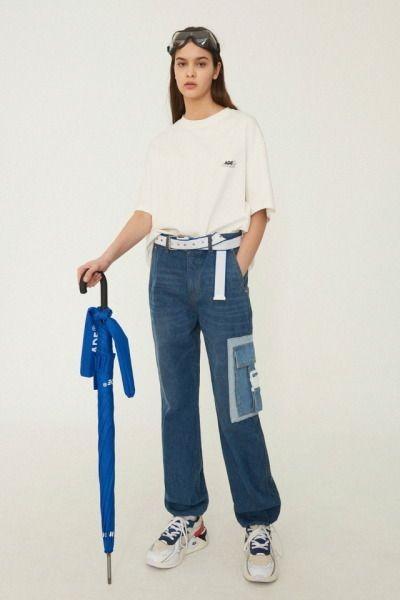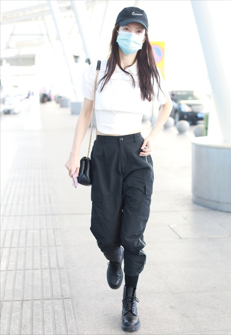 The short white T-shirt is designed to reveal the belly button, which can show the temperament and personality of a young girl. When paired with off-white overalls, the lines are obvious. , and the color will not look dull. A pair of sneakers will make your whole body full of energy.