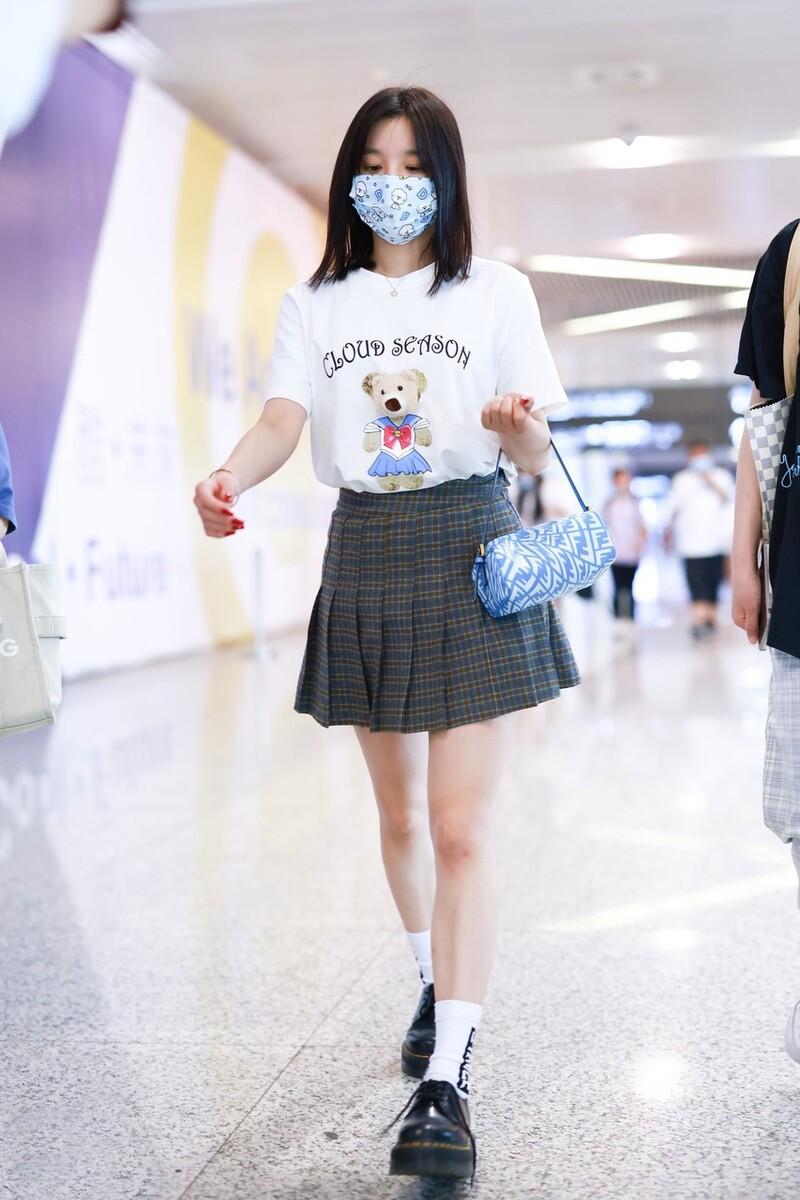 A white T-shirt is the most basic item in summer. Song Yuqi chose a bear-printed one, which is very suitable for her age and is full of cuteness. The lower body is paired with a Japanese-style JK skirt, which is full of pure college style. Combine white stockings with small leather shoes to add a touch of French romance.