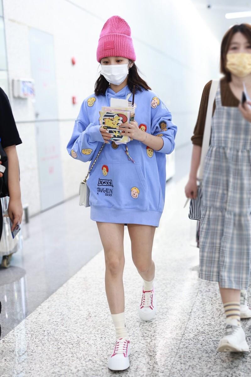 For girls, trendy dressing styles can increase their traffic, so many new generation female artists have appeared. At the airport, dress fashionably and brightly. 22-year-old Song Yuqi is one of them. In order to look very good, she wore a loose sweater into a “short skirt” and paired it with a woolen hat, which was even more incomprehensible.