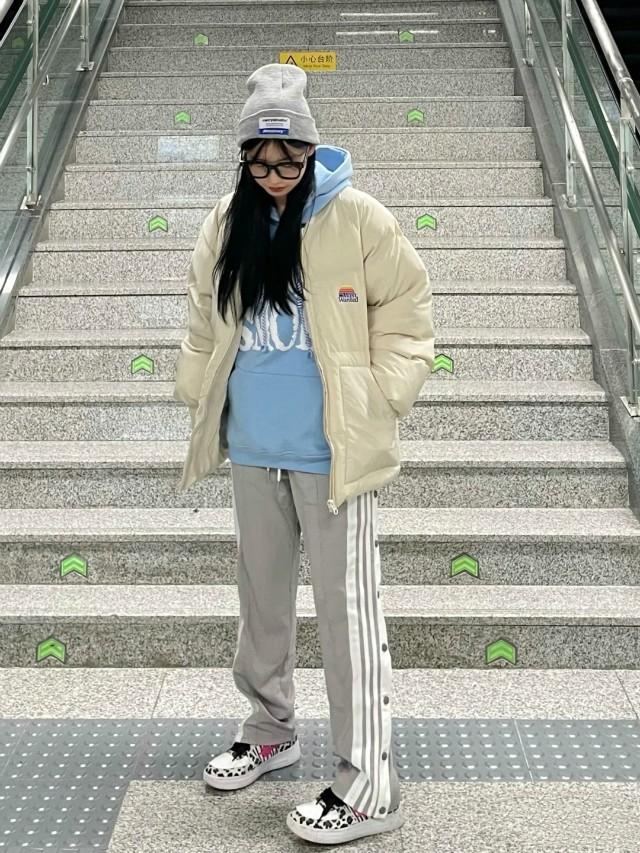 1. Down jacket + sweatshirt, releasing a warm and fashionable atmosphere