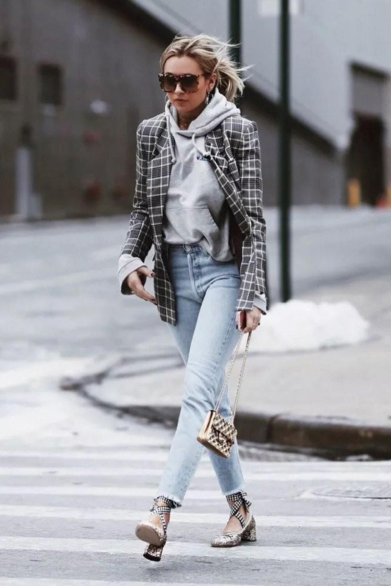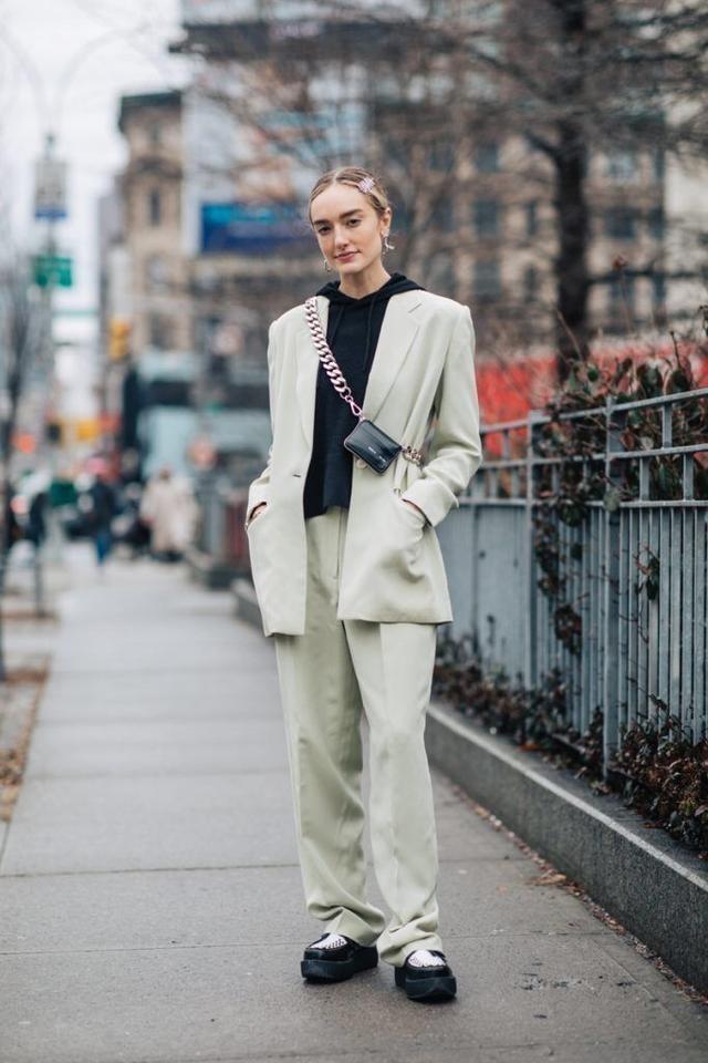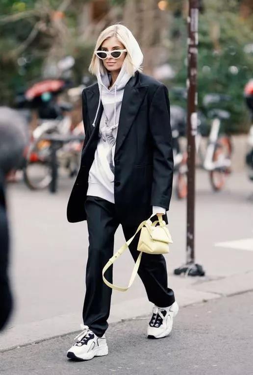1. The fashionable charm of suits + sweatshirts