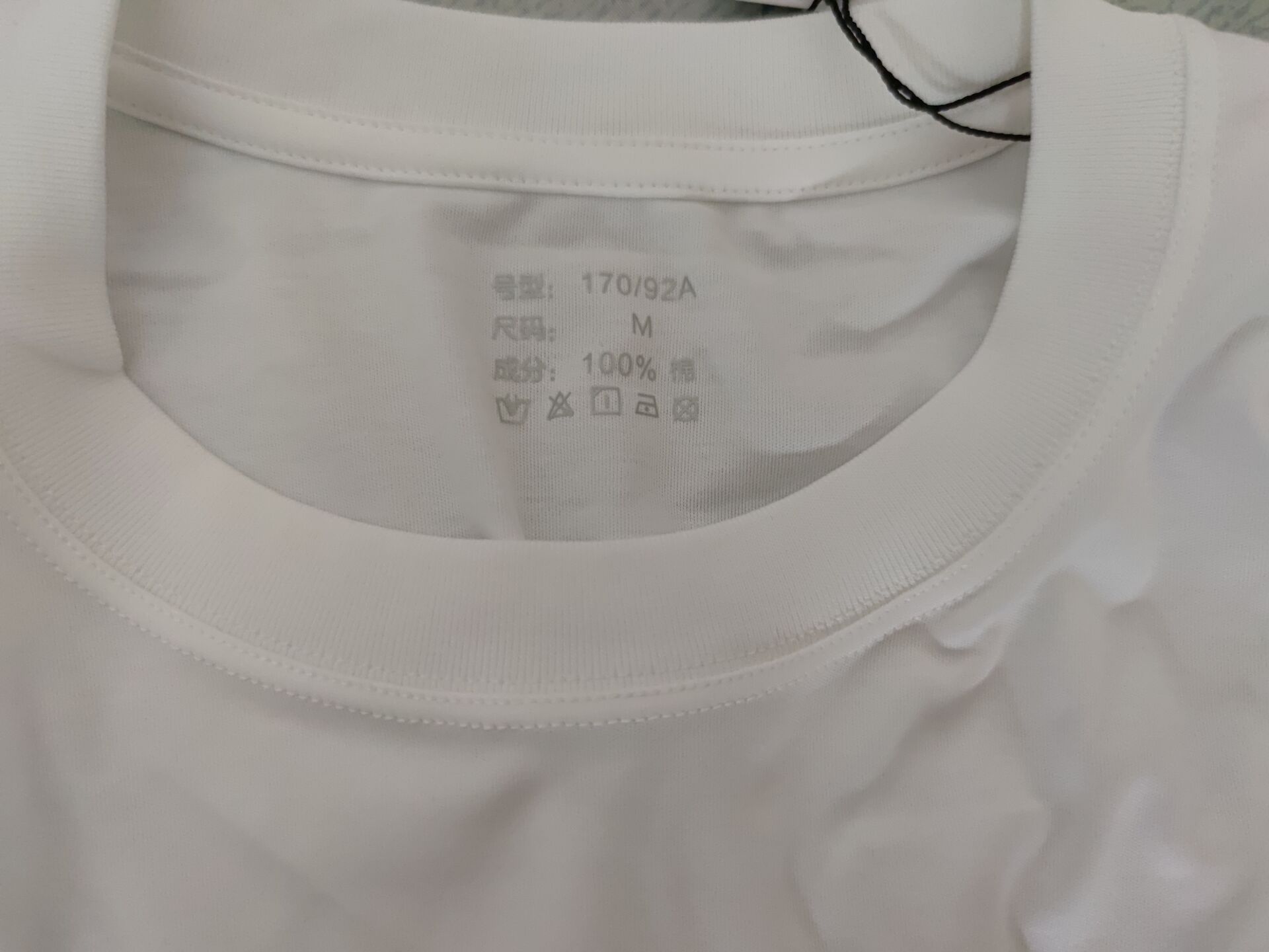 This T-shirt is made of pure cotton and is very elastic Well, the white is not a particularly dazzling white, but a milky white that looks very comfortable to the eyes. It feels very comfortable and is very comfortable to wear. What’s particularly nice is that the size is marked directly on the back collar, not like other products. The brand’s T-shirts are also anti-human and have a small label with a cut-neck design