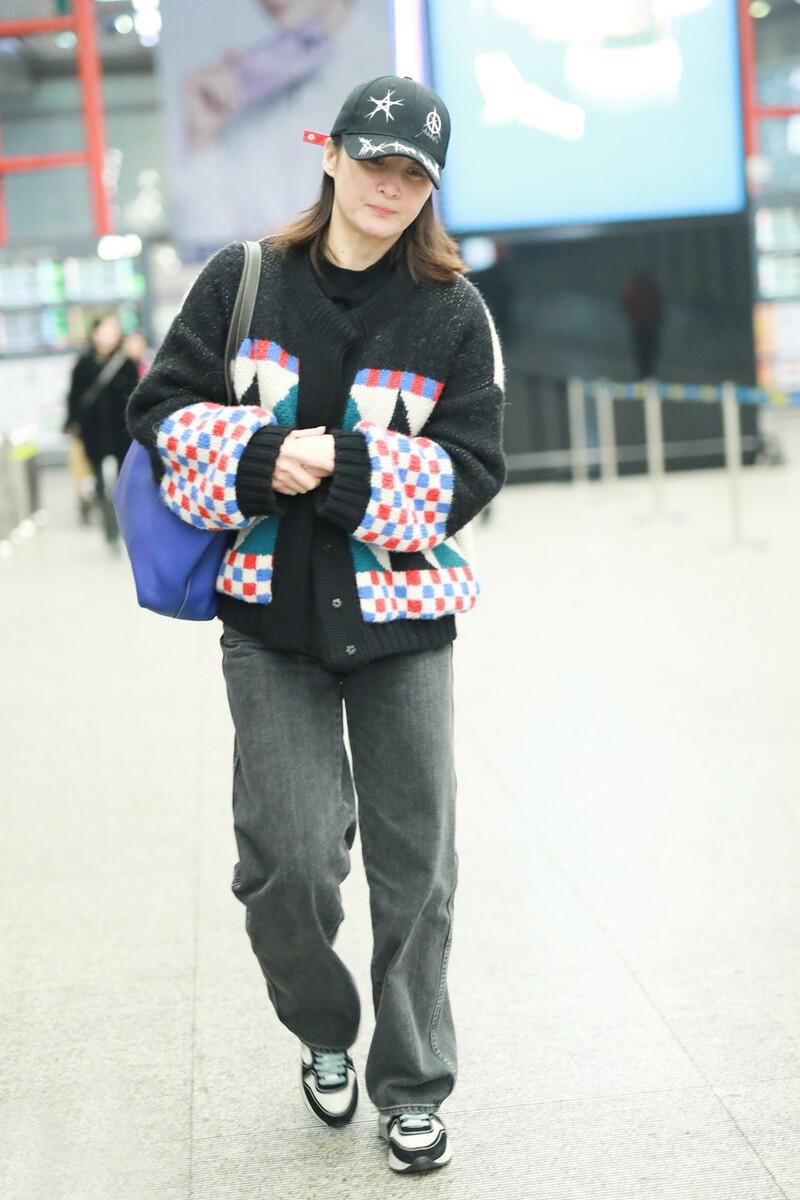 Patterned knitted cardigan + jeans are very girly. This combination does not show the actual age at all. The gradient color combination makes the whole thing full of layering and visual emphasis. , Jiang Qinqin can always wear simple jeans with a sense of fashion.