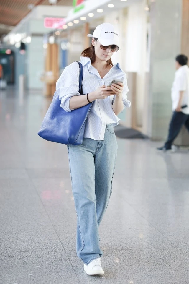 Jiang Qinqin showed his elegant and clean temperament through a casual T-shirt and jeans, while adding white sneakers and a baseball cap. It increases the age-reducing effect and highlights the youthful and sporty style, making Jiang Qinqin look younger and more relaxed and casual. The simple combination of single items is very flattering to the figure.