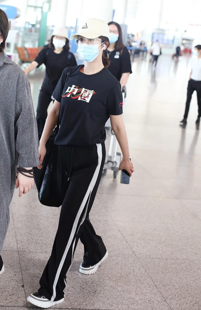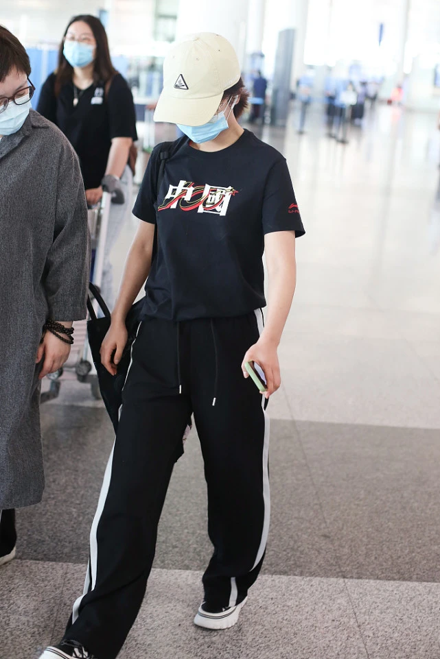 The black T-shirt has a pattern with the word “Chinese” on it. The whole shape is very bright. Although it is simple, it is very in line with the current situation. The aesthetics of national fashion. Nowadays, artists are wearing domestic products, but this is something everyone likes to see. T-shirts are also made of eye-catching red and black, and the small area of ​​red embellishment looks more refined.