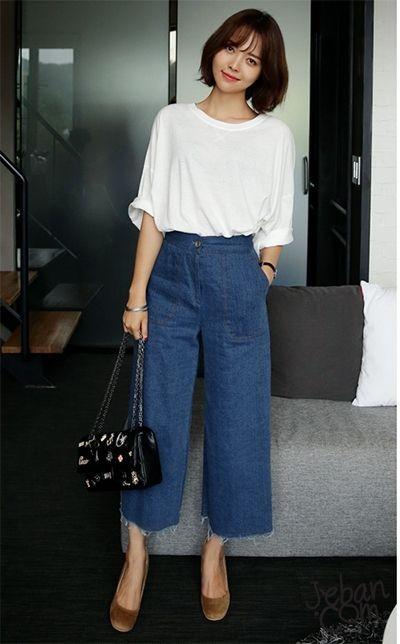 Wide-leg pants and T-shirts are must-have items in summer, and the combination of the two is very suitable for small people , can make the style more fashionable and aura.