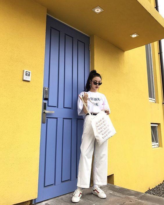 The pairing of white denim + white printed short sleeves is really amazing! Pair it with white canvas shoes for a casual yet youthful look, full of college style and youthful vitality! Loose short sleeves are more tolerant to the body shape, especially for girls with fat belly. If you tuck your top into your pants, even if you have fat belly, it will not be exposed.