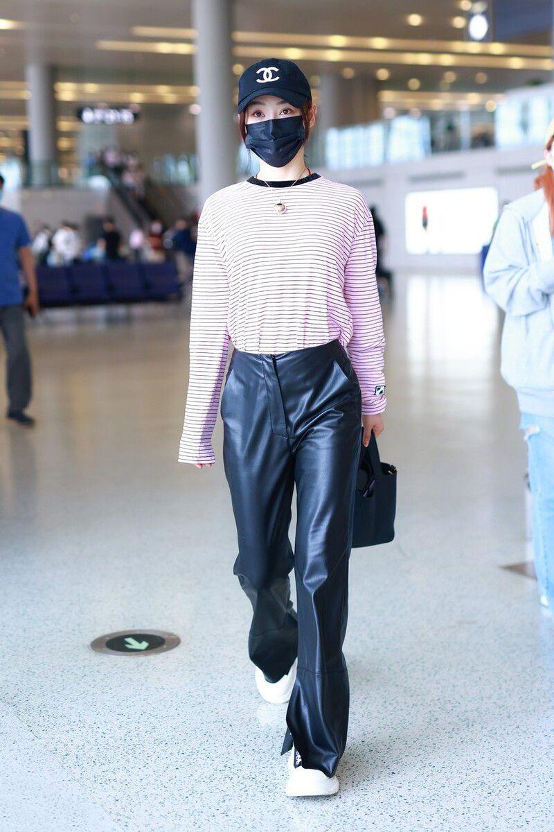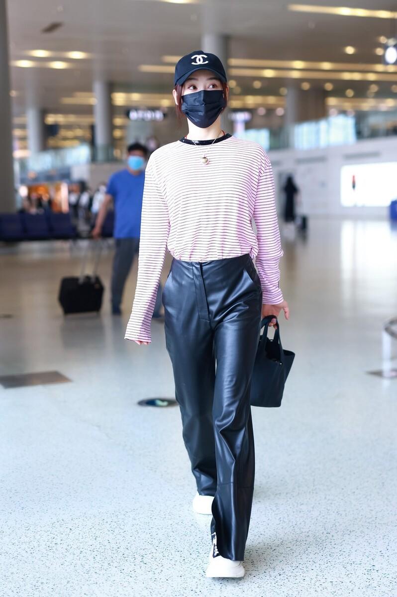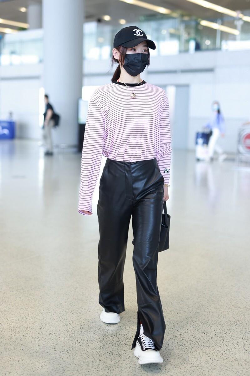 Yuan Shanshan wore the right leather pants + striped T-shirt this time, full of youthfulness (a 34-year-old looks like a 24-year-old)