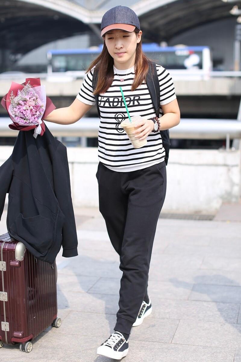 The outfit Liu Shiwen wore at the airport was all streamlined with white and black elements. Although the overall atmosphere is very simple, this look is anything but ordinary. The black and white horizontal striped short sleeves are relaxed and casual, full of comfortable style. Although she is wearing a simple outfit, it cannot hide Liu Shiwen’s inner light.