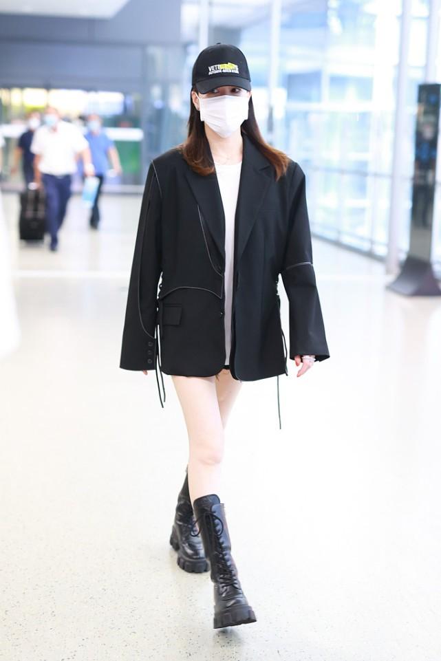 Oversize T-shirt paired with super shorts is also quite common in daily life, and Charmaine Sheh chose a more trendy shoe – long lace-up Martin boots to match it, which not only fills up the space in the legs The large area of empty space prevents the outfit from looking too simple, and at the same time greatly doubles the overall handsomeness, showing a superior aura.