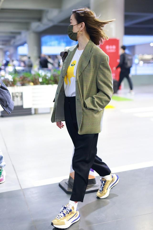 In addition to directly choosing a simple layering of T-shirts and trousers, you can also add a jacket on this basis to make the outfit more layered. When layering multiple items, you should pay attention to the primary and secondary expressions. Charmaine Sheh chose a more eye-catching green suit jacket as the main item, and used simpler colors for inner wear and trousers to prevent the colors from being too messy. Push the look too hard.