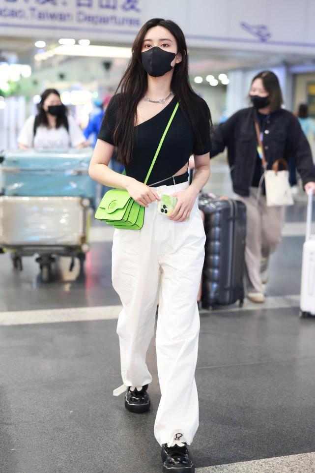 Meng Ziyi knows how to wear fashionable black T-shirt + white pants (simple and fresh style)