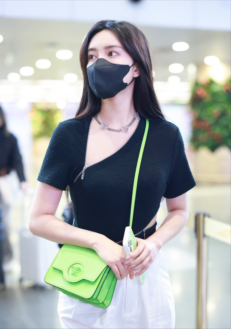 Take Meng Ziyi’s T-shirt as an example. First of all, its color is very simple. The pure black series is suitable for girls of different body types. In shaping the style, More versatile every time.
