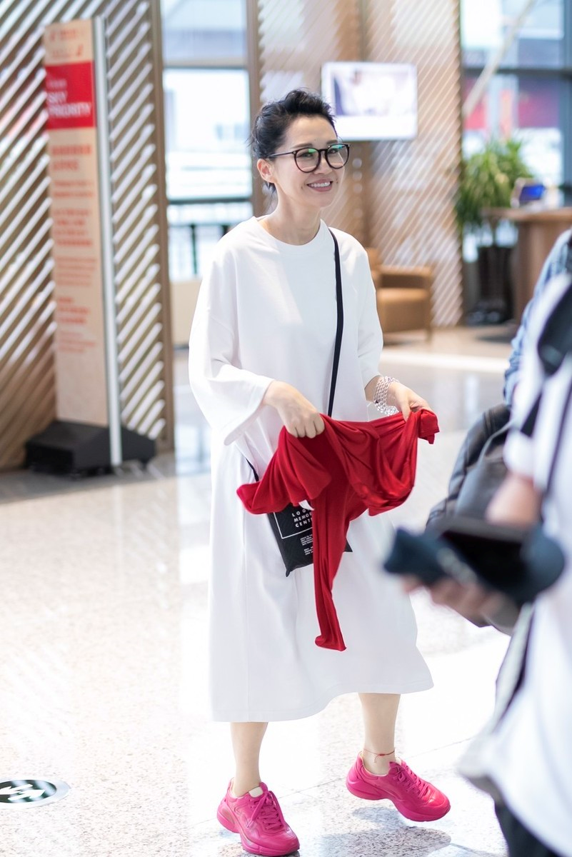 She is known as the frozen age goddess Xu Qing is now in her fifties, but based on her appearance, we can see that her temperament is still very young, especially the outfits she wears at the airport can show her youthful vitality. This time Xu Qing chose A loose white T-shirt dress shows a casual and casual temperament. It is also very good for concave modeling and can make the body proportions better. “Xu Qing” is being willful again. She walked into the airport wearing a long white T-shirt. How does she look like a person from 1969?