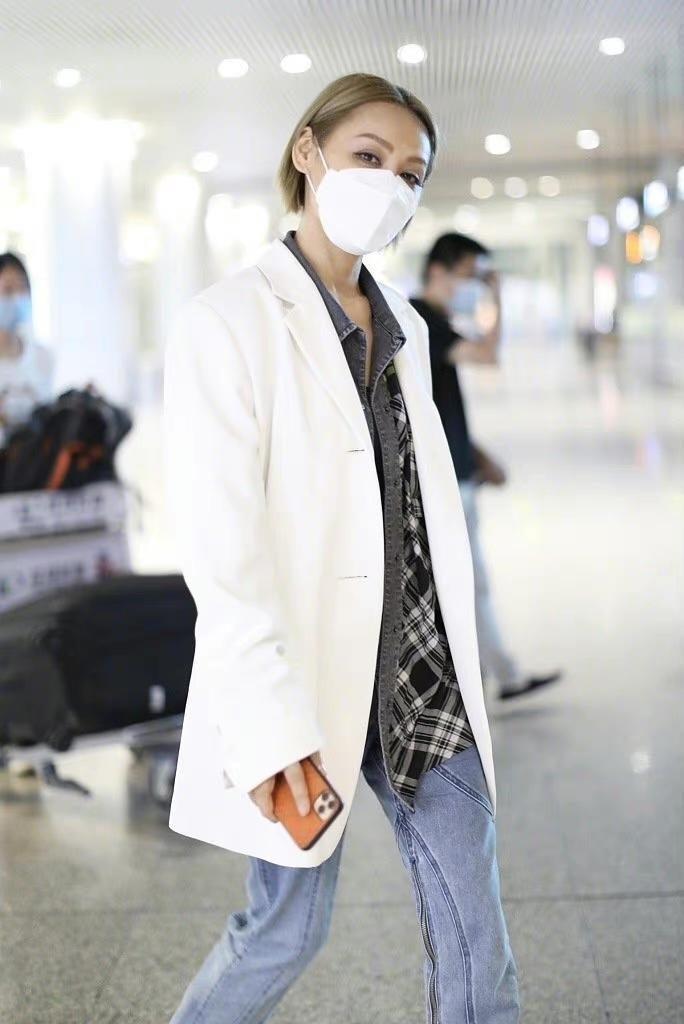 A suit will also look good with jeans.It is very casual. This kind of matching is relatively simple and easy to control. For example, Ning Jing pairs herself with a white suit and blue jeans. It is simple, fashionable and individual. Paired with shirts, it has a strong sense of layering.