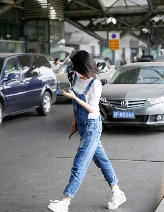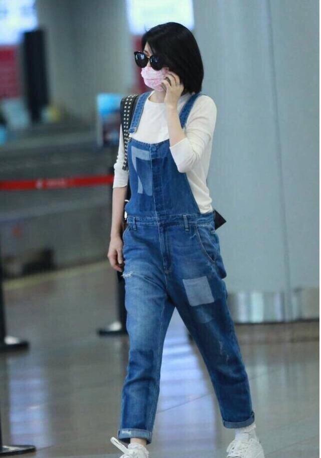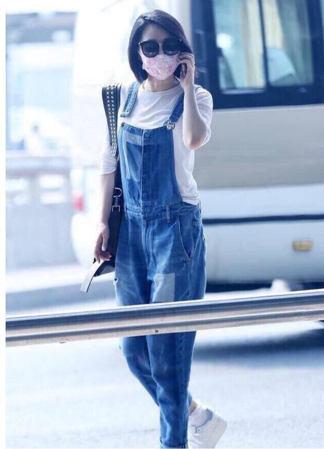 In order to make herself look younger, Xu Qing worked hard Boldly pair yourself with a pair of blue denim overalls. The fabric itself will inject you full of youthful vitality. Combined with the design of the overalls, it will give the overall outfit a college-style temperament, especially Suitable for daily use when going out.