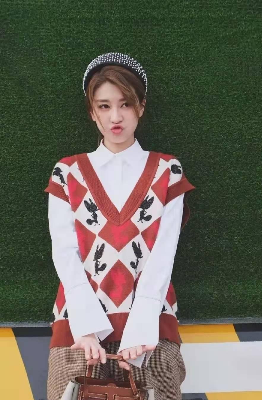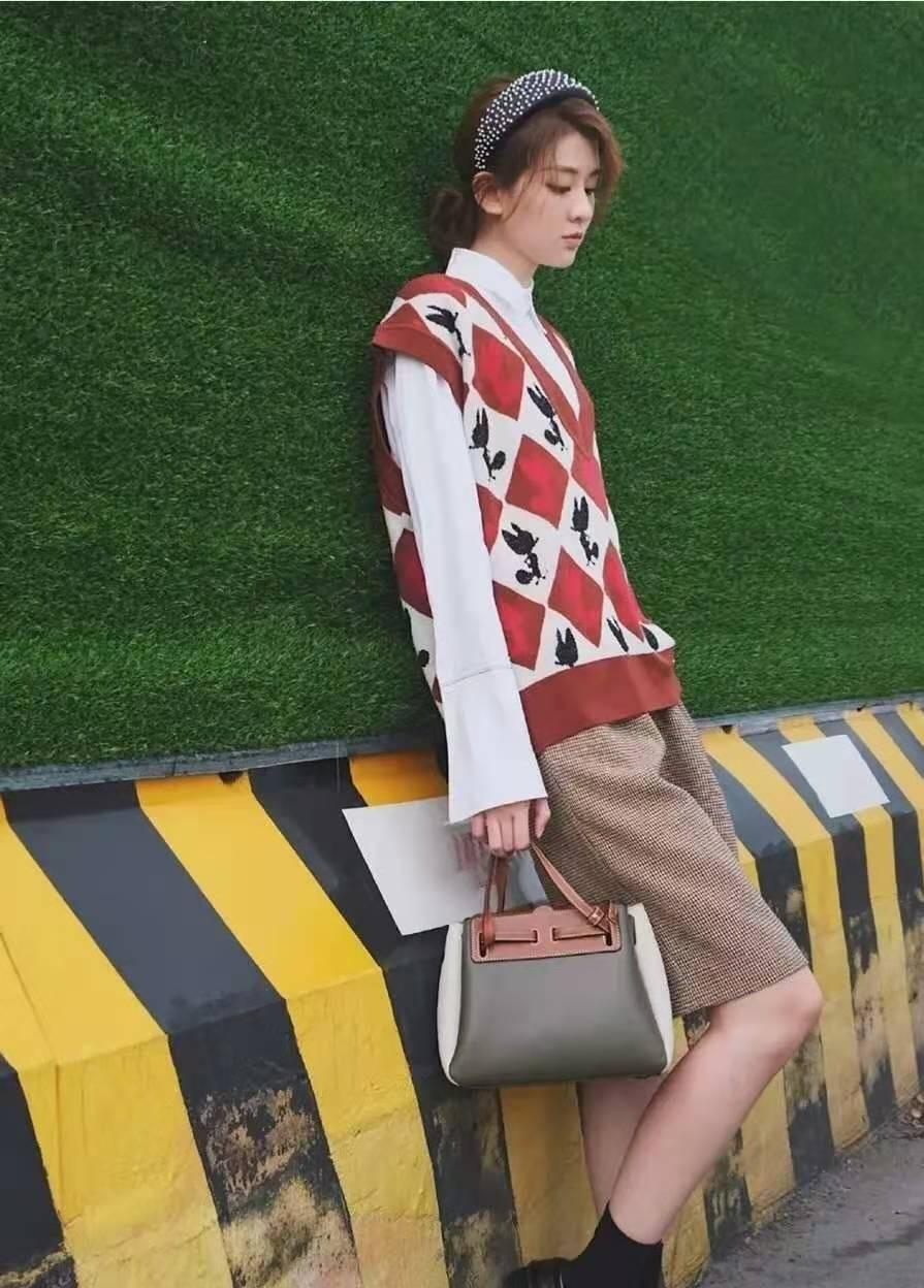 Everyone has a white shirt. How can we wear it brilliantly? We can learn from Qiao Xin and wear a white shirt as an inner layer and layer it on the outside. A knitted vest, the white shirt and the knitted vest are made of fabrics that are one hard and one soft, which can enhance the layering of the entire outfit; the charm of the white shirt and knitted vest, one hard and one soft, creates a different kind of charm.