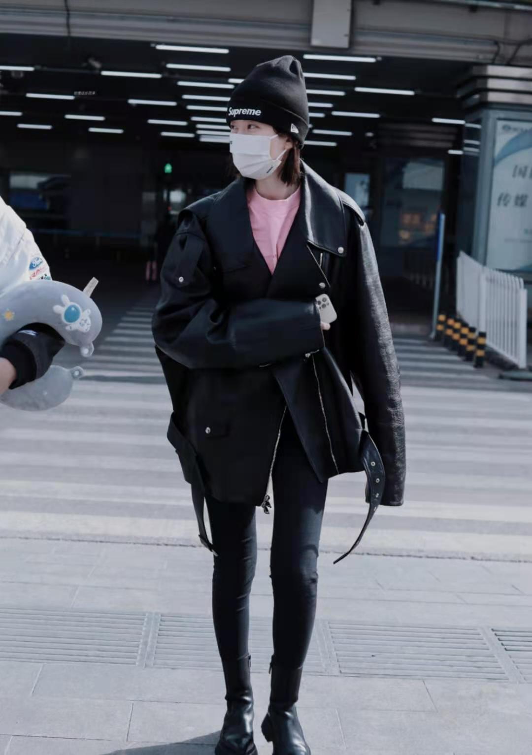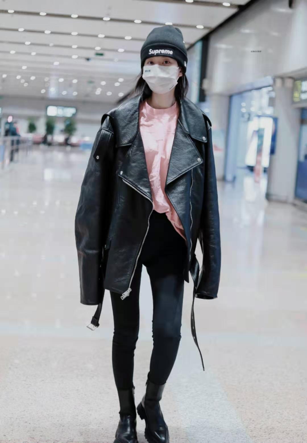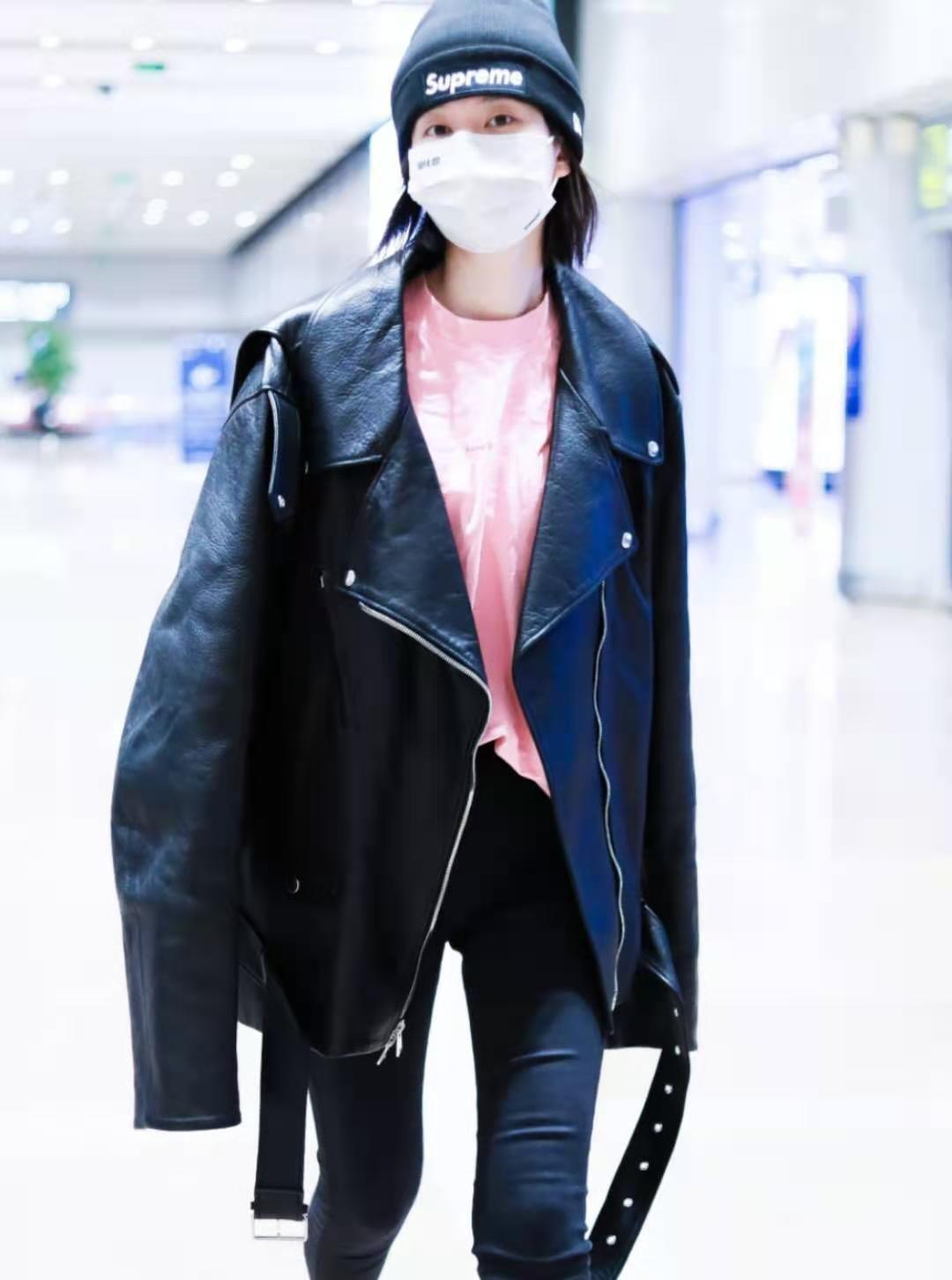 Wearing a leather jacket is not an easy task. From selecting the style to matching, you have to pay attention to everything. If the style is not chosen well, All matching is useless; if the matching is not good, no matter how fashionable the style is, it will be in vain. In this content, we will take Qiao Xin’s leather jacket style as an example to talk about how to wear leather jackets to perfection. Qiao Xin is indeed a “fashionista”. She looks sweet, sassy and beautiful when walking to the airport wearing a leather jacket and a pink T-shirt.