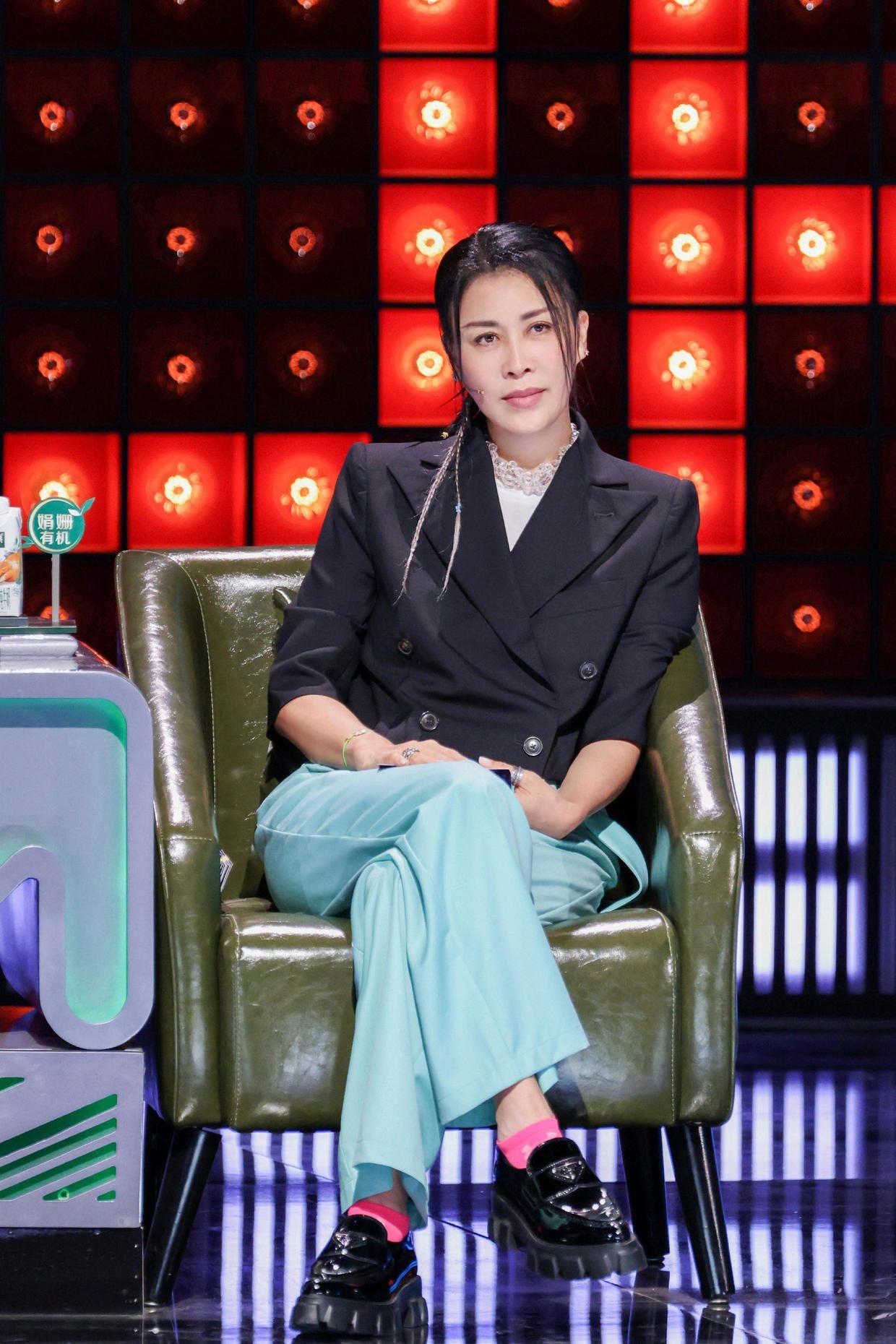 There are different ways to wear suits. Take an ordinary black suit as an example. When we match it You can also match it with different trousers to show your sense of fashion. Na Ying matched it with green wide-leg trousers, which is very fashionable when combined with a black suit. This combination of bright and dark colors is also very elegant.