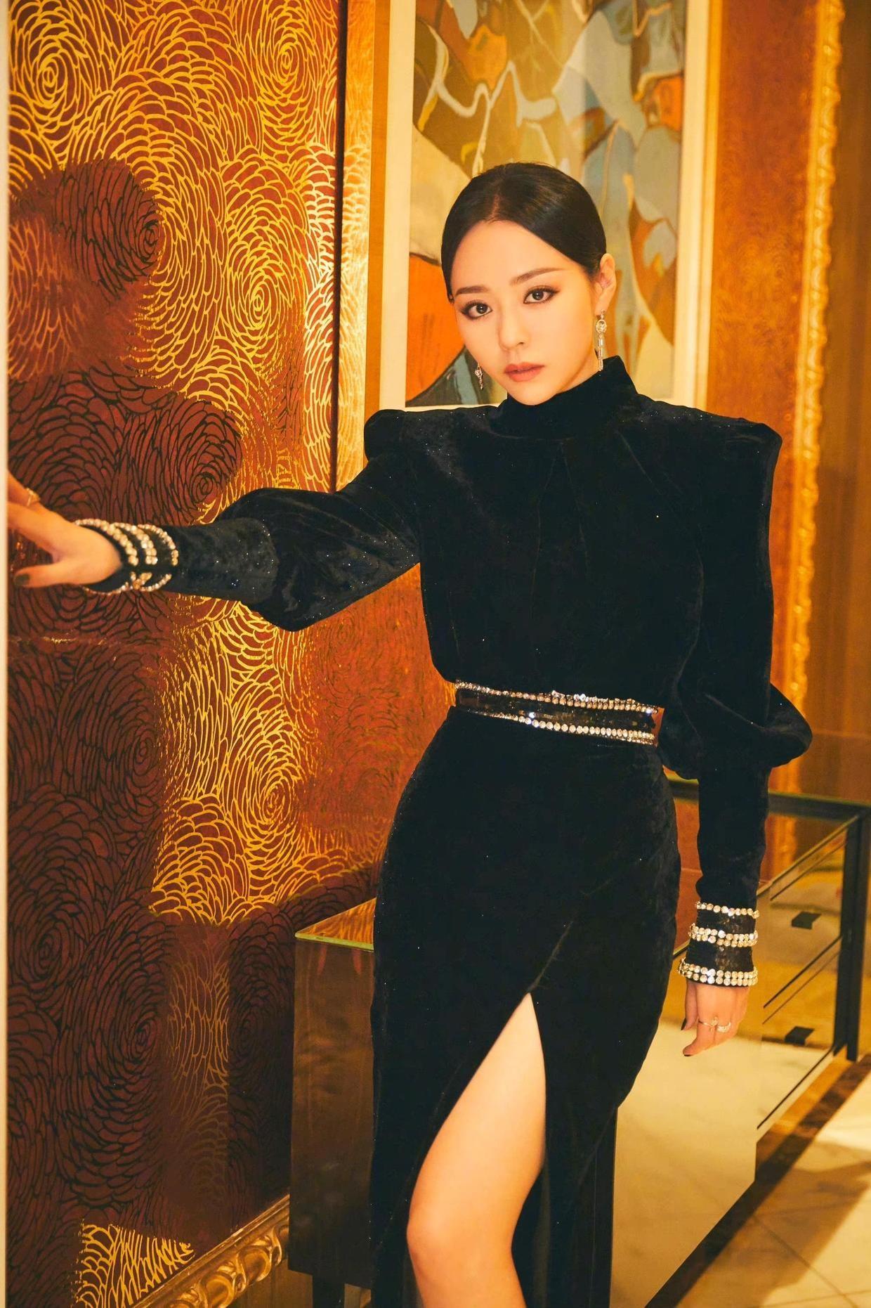 The black dress is low-key and elegant. It is also a must-have for mature women’s wardrobe. Zhang Liangying has a very beautiful figure. Not bad, a black dress looks good on you�It is slimmer, and combined with the shoulder-padded cut, it can modify the head-to-shoulder ratio and look fashionable and elegant.