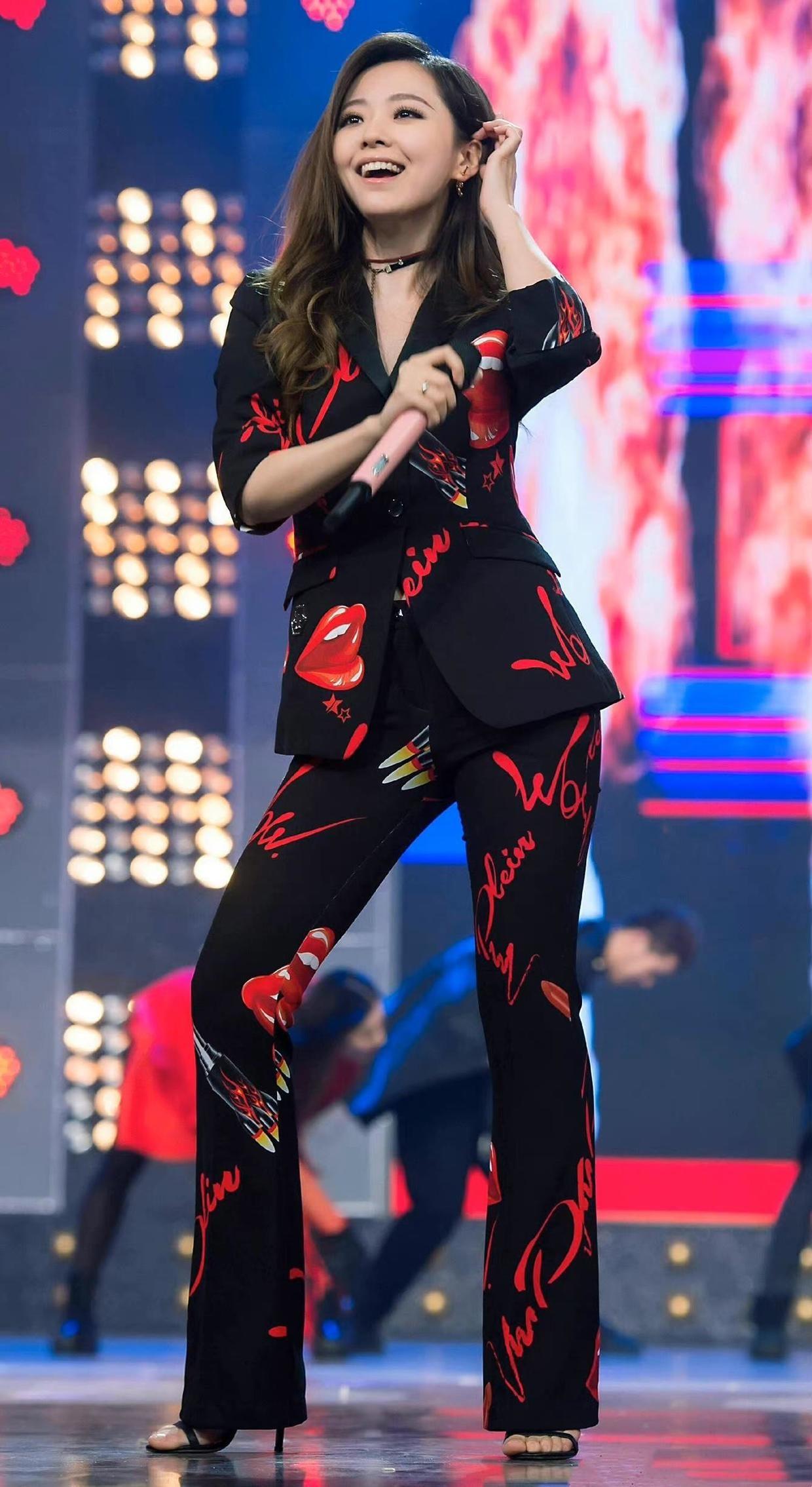 There are also many styles of suits. Some sisters want to wear something comfortable and simple, so just give it to them. Just match this kind of suit yourself. A fashionable suit can reflect your personality and charm, and the suit jacket worn by Zhang Liangying is decorated with red prints. This fashionable color can more easily convey a sense of high-end and looks cool.