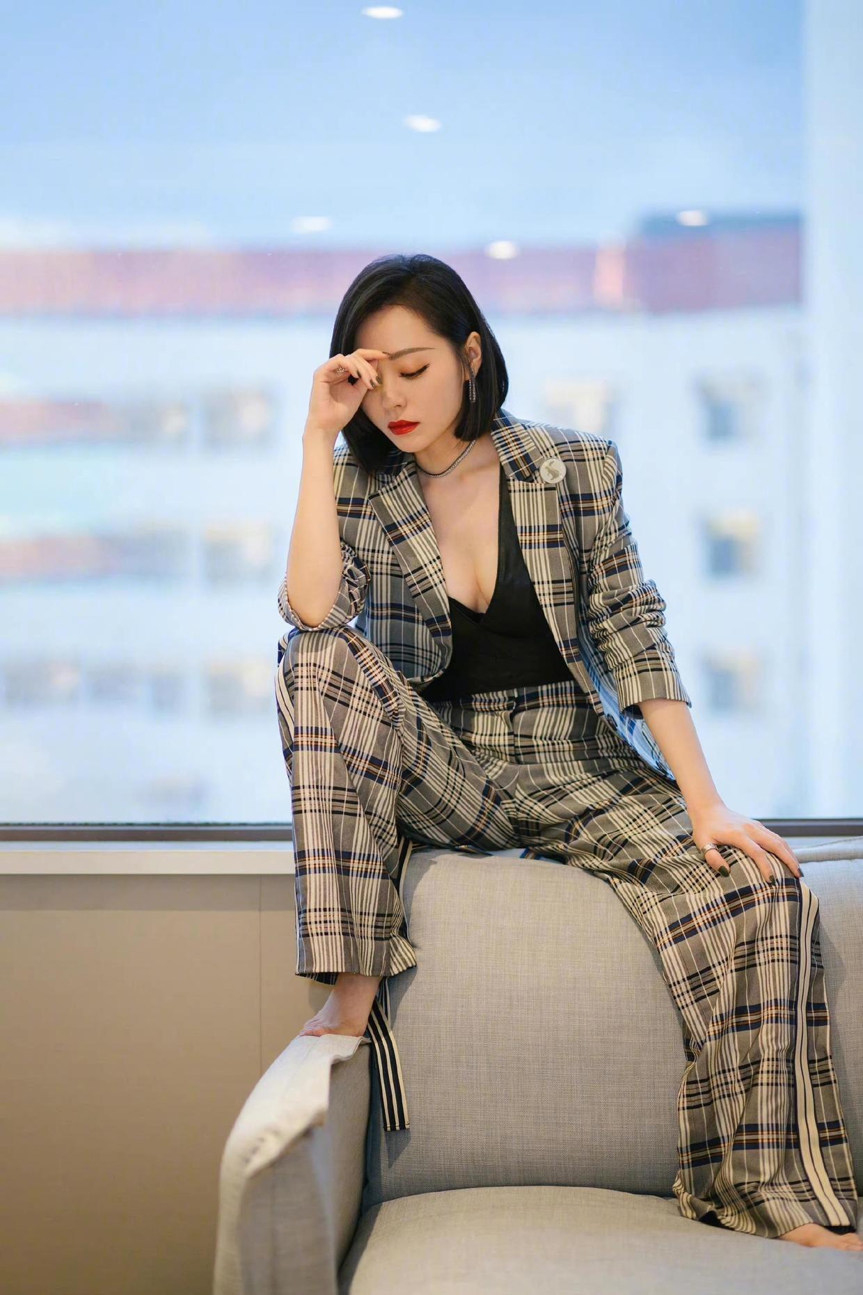 The matching of black suit and dress is more professional style. This black suit and dress is paired with Zhang Liangying, which also reflects her good figure. The effect of modifying the figure looks very good, and she is really slim visually. Combined with high heels, you can easily gain height and look slimmer.