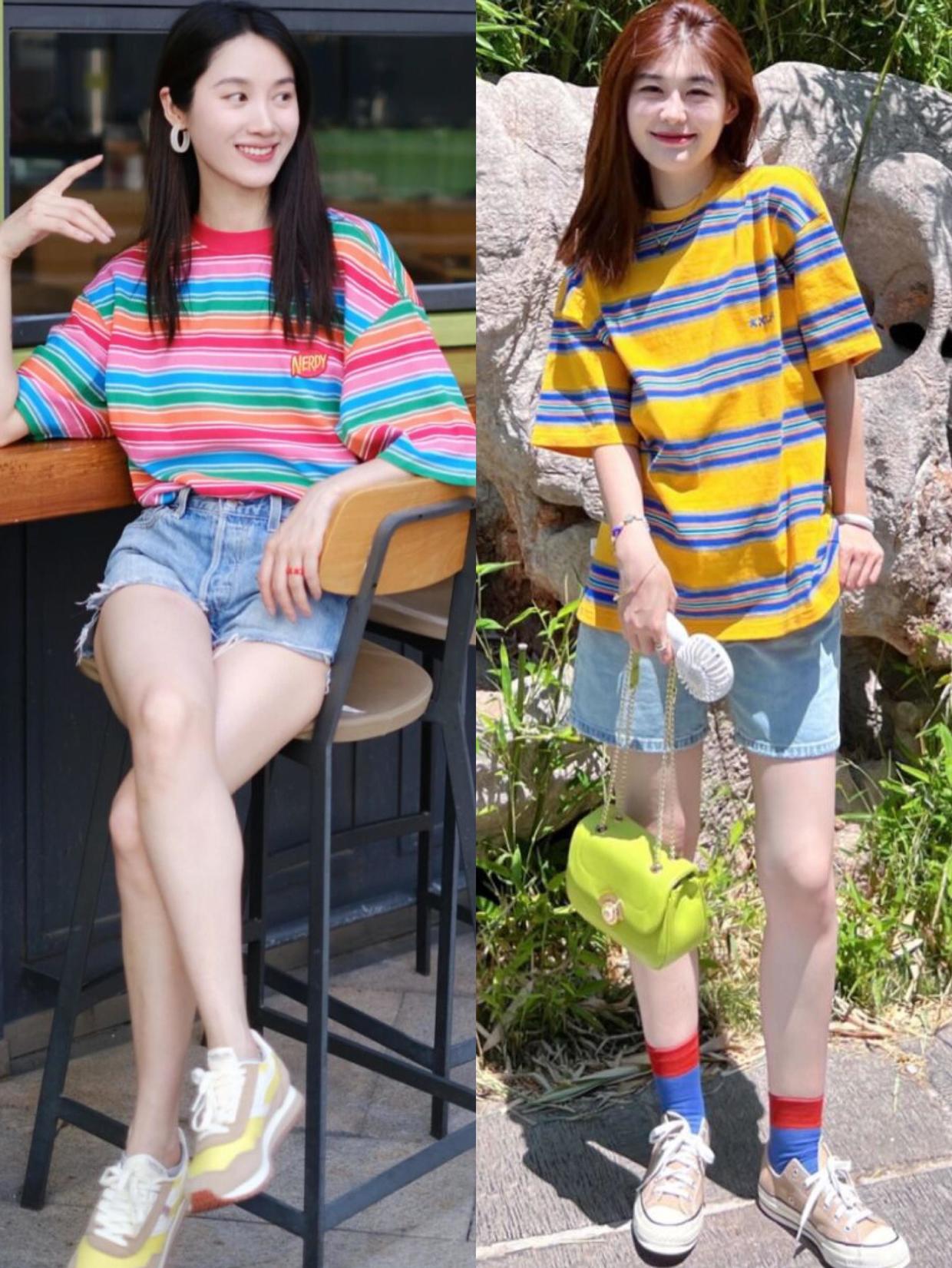 A T-shirt with striped elements will not look so boring when worn on the body. There is no need to always buy some solid color T-shirts just to be versatile. As long as the printing elements are simple and elegant, they can make such clothing look more special. When buying striped T-shirts in summer, you can boldly try stripes with higher color saturation. It can not only play a role in showing whiteness, but also make the outfit more personalized.