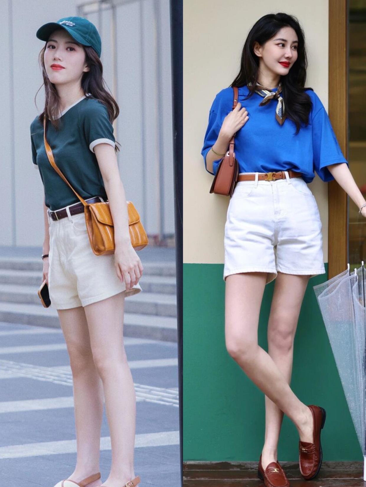 T-shirt & The combination of shorts is very popular in summer. It is very comfortable to wear and relatively cool. However, many T-shirts have relatively long hems. We can tuck the hems into pants to create a nine-headed body proportions, which makes the whole person’s legs appear more slender. This kind of outfit can also better highlight the waistline.